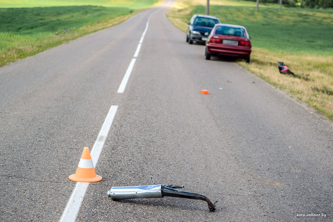 — Мотоциклист ехал очень быстро, настолько, что непонятно было вообще, как водитель собирался входить в поворот, — рассказал корреспонденту Onliner.by очевидец. — Мотоцикл спортивный, и парень пытался максимально уложить его влево. В итоге на скорости так боком и полетел по оврагу. Может быть, улетел бы дальше в поле, но ударился о пригорок и полетел параллельно дороге, как раз туда, где стояли девочки.