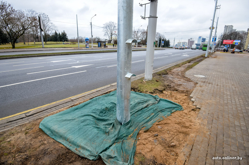 «Предыдущие опоры установили еще 37 лет назад, — сообщили в Мингорисполкоме. — Они использовались для электротранспортных нужд — удерживали троллейбусные линии. Позже маршруты троллейбусов изменили, столбы остались лишь в качестве фонарей. Пару лет назад институт БНТУ провел исследование их состояния и пришел к выводу: опоры находились в предаварийном состоянии, подлежали замене. На их место стали устанавливать более легкие, травмобезопасные опоры из тонкого металла. Они созданы способом горячего цинкования, служат до 30 лет. Устанавливают энергоэффективные лампы, позволяющие экономить до 30% энергии без частичного выключения наружного освещения в ночное время. Сейчас проходит второй этап замены столбов — от пр. Машерова до ул. Игнатенко. Первый (от ул. Мельникайте до пр. Машерова) прошел в прошлом году. Во время третьего этапа замену завершат на участке проспекта от ул. Игнатенко до ул. Саперов».