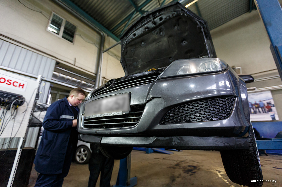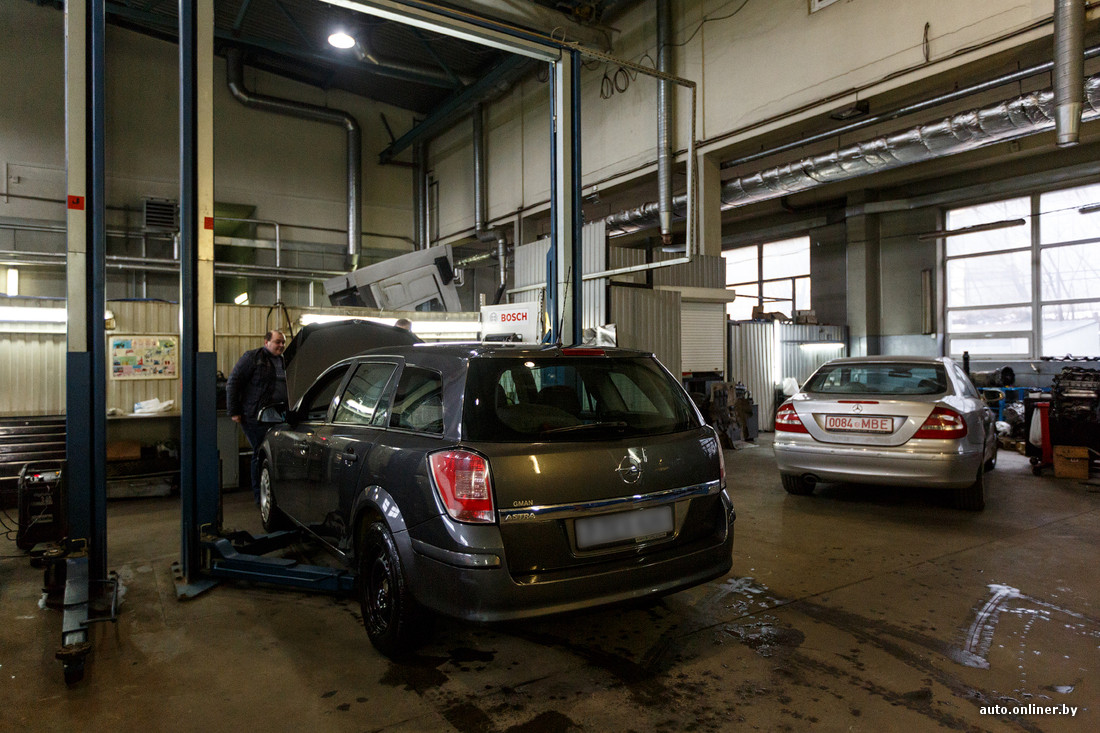 Звучит неплохо и даже радужно, а как все обстоит на самом деле? Отправляем Opel Astra на подъемник. Пока щелкает механизм, Кирилл рассказывает предысторию: «Эта машина появилась в Беларуси три года назад, привезена моим дядей. После недолгой эксплуатации он передал ее мне. До этого момента ездила по Бельгии. VIN не скрываю (указан в объявлении). Каждый может узнать историю автомобиля, выяснить, значится ли он в залоге, уточнить другую информацию. Так, мне кажется, возникает меньше вопросов. Езжу я много и часто: за полгода набегает около 60 тыс. км пробега. Родители жены живут в Крупках, наш загородный домик находится под Марьиной Горкой. В течение одной недели могу несколько раз съездить туда и обратно по обоим маршрутам. Потому изначально выбрал дизель как более экономичный вариант. Теперь пришло время вложиться в преобразование недвижимости, и машина отступила на второй план в рейтинге потребностей. Продаю Opel уже два месяца. Звонки от заинтересованных людей были, однако дальше разговоров, как видите, дело не зашло. С начала декабря по выходным подрабатываю таксистом — деньги лишними не бывают. Возможно, это отталкивает».