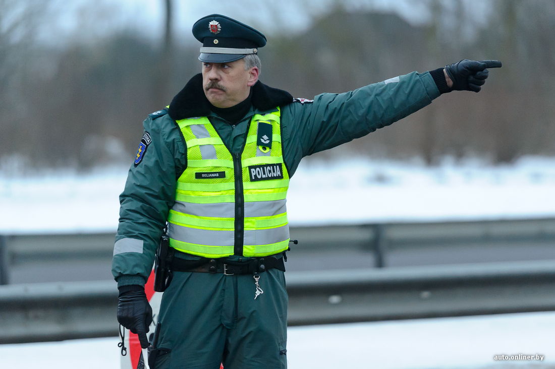 Семь часов утра. Минское шоссе. На въезде и выезде из Вильнюса сотрудники спецподразделения дорожной полиции «Кобра» (аналог нашей «Стрелы») выставляют временные знаки ограничения скорости, сужая движение до одной полосы. Один инспектор дозирует автомобили, выпуская их в коридор партиями.