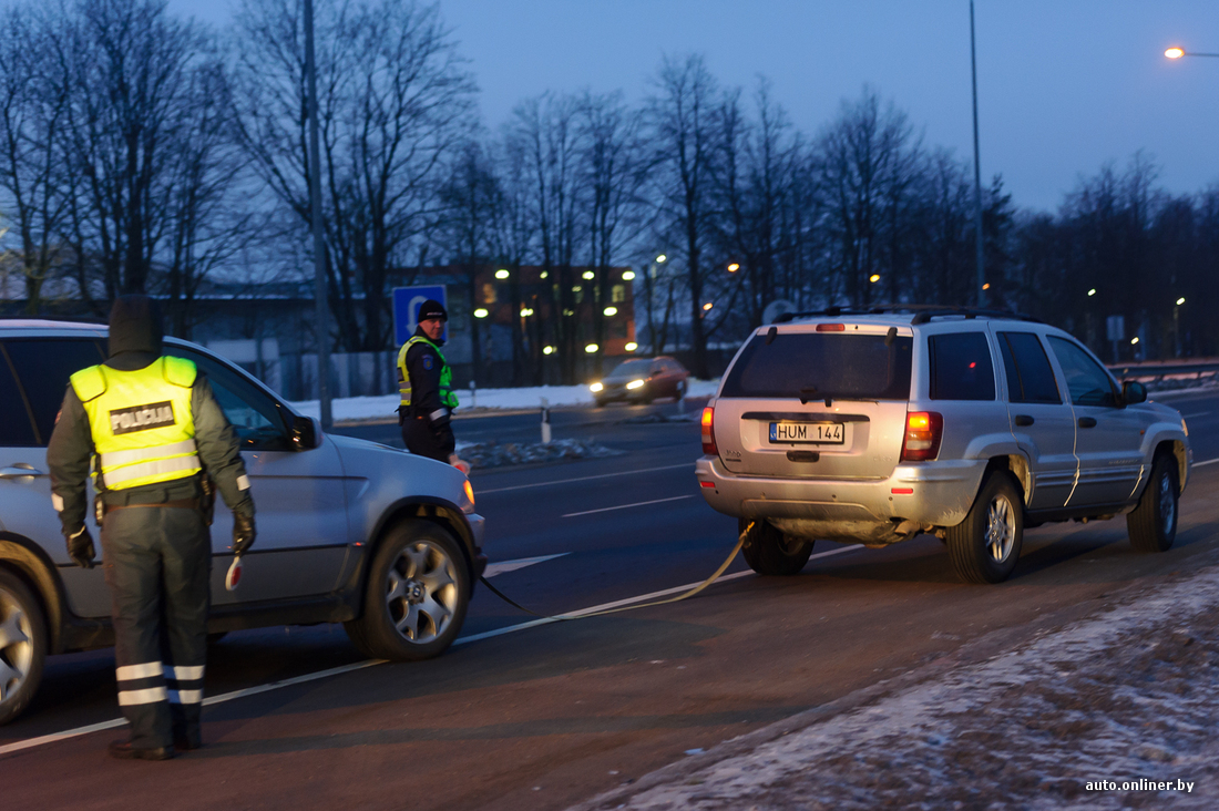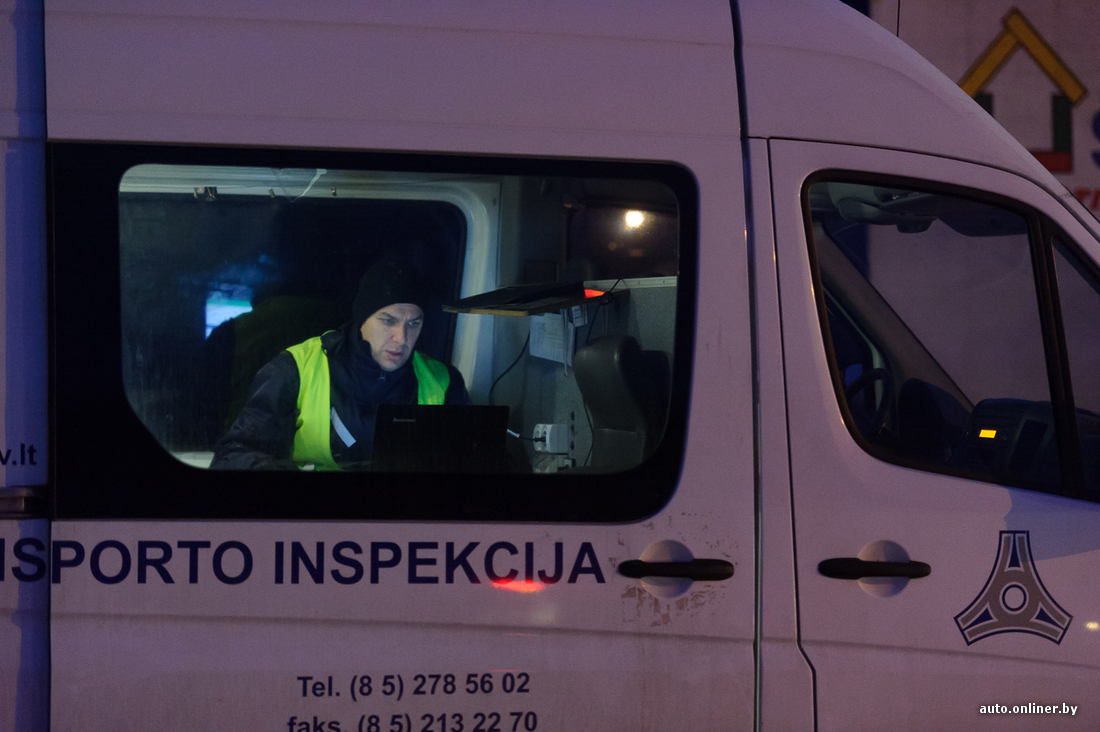 Как правило, подобные проверки проходят по ночам в конце недели — в пятницу, субботу и воскресенье, когда увеличивается число пьяных на дорогах. В будние дни рейды тоже бывают, но редко, и мы попали как раз в такой день. Сразу заметна разница между Вильнюсом и Минском: если у нас основной час пик приходится на 8—9 часов утра, то в столице Литвы он длится с 7 до 8 часов. Водители реагируют довольно спокойно (почему, станет понятно позже) — во всяком случае, недовольных мы не слышали, хотя пробка растянулась на несколько сотен метров.