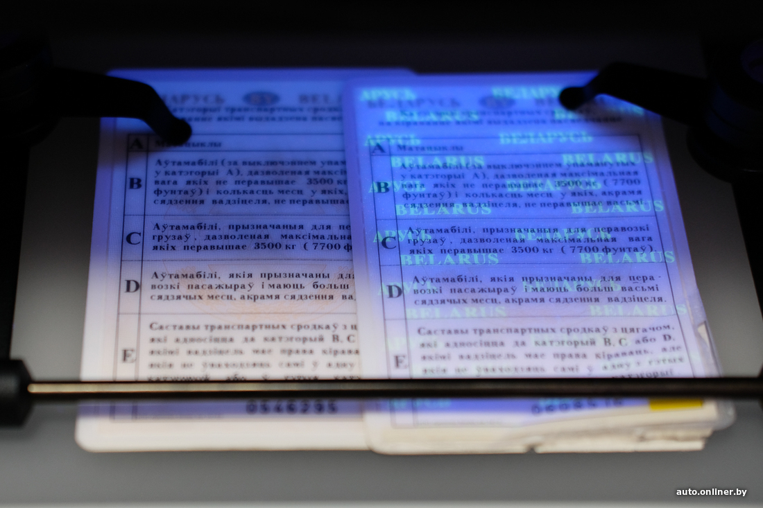 В качестве доказательства специалист просвечивает оба удостоверения в ультрафиолетовых лучах. В настоящих правах «проявляются» диагональная широкая полоска и «облачко» в районе фамилии.