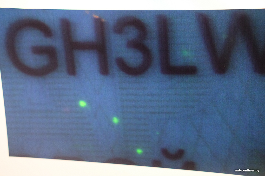 Пример типичной липы — техпаспорт на Audi A6 (1996 г. в.), будто бы выданный жителю Минска. Попытались подделать голограмму, но микрокапсулы (степень защиты) все выдают. Сразу заметно, что они имеют четкую структуру, а у подлинных документов эти элементы совсем другие — как бы «вживлены» в структуру бумаги. Для эксперта это все равно что увидеть грубую орфографическую ошибку в диктанте.