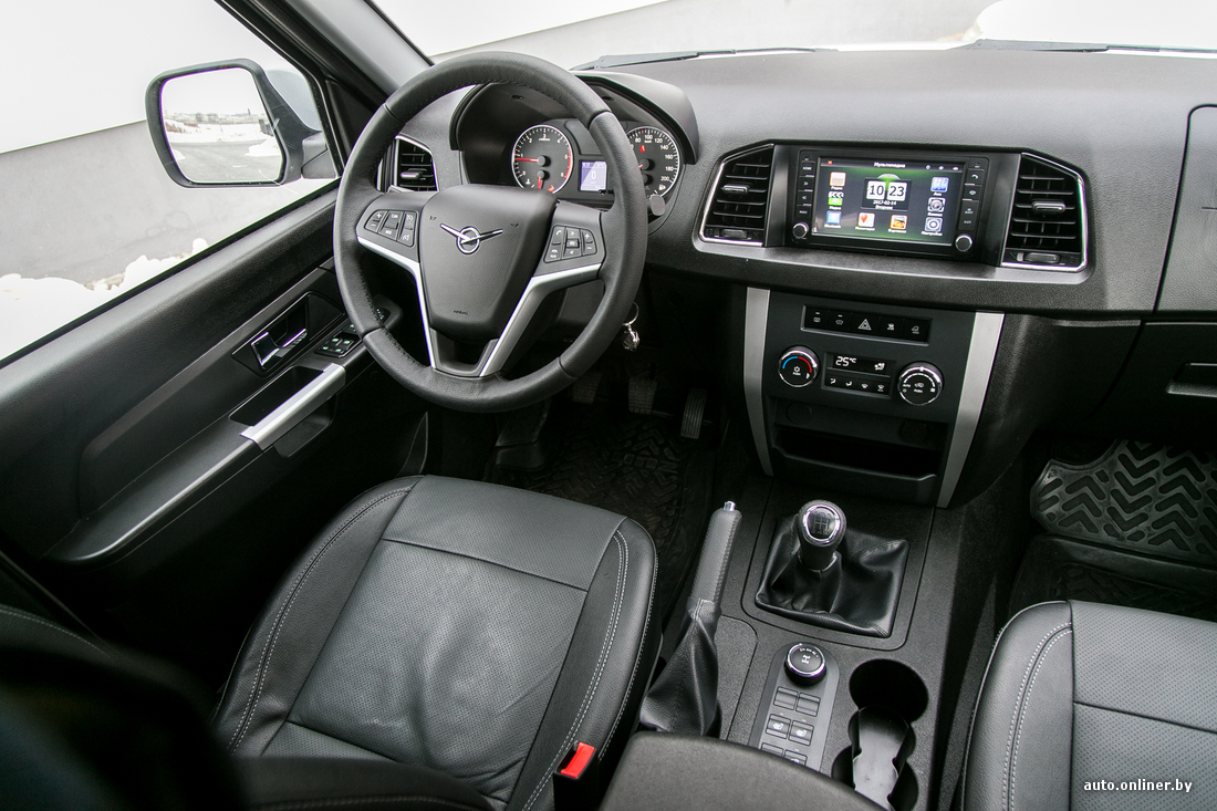 Стартовал наш тест-драйв на площадке дилерского центра, и я сразу попросился за руль, чтобы проехать на машине по городу и трассе, а не только по бездорожью. Предварительно изучил особенности предыдущей модели, чтобы было с чем сравнивать. Первое, что бросается в глаза в новом внедорожнике, — это руль, который напомнил мне баранку в Chevrolet Cruze. Он получил клавиши! Справа — управление аудиосистемой, слева — блок управления круиз-контролем (новая опция Patriot). На центральной консоли появился блок полноценного климат-контроля (однозонный), а дисплей мультимедийной системы переехал на «этаж» выше. Россияне также заменили устаревшие подрулевые рычажки. Появилась функция трехкратного моргания поворотника после легкого касания переключателя. А еще здесь есть подогрев всех четырех сидений, зеркал, заднего и лобового (!) стекла и даже руля.