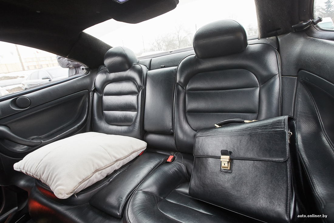 — Мотор — атмосферный бензиновый «двухлитровик», «кушает» только 95-й бензин. Расход — примерно 10 литров на сотню. Коробка передач — механическая. Привод передний. Для 1998 года выпуска набор опций впечатляет. Салон — кожаный, ныне в довольно хорошем состоянии (на водительском сиденье кожа все-таки потрескалась из-за времени). Кресло «пилота» имеет электронную регулировку в четырех плоскостях, предусмотрена память положения. Из-за кузова купе порой приходится откидывать спинку, чтобы пропустить пассажира на задний диван. Тут все продумано: кресло отъезжает и возвращается в прежнее положение само. Электропакет полный: зеркала, окна, дожим стекол. Подогрев сидений предусмотрен, но вышел из строя. Кондиционер работает исправно.
