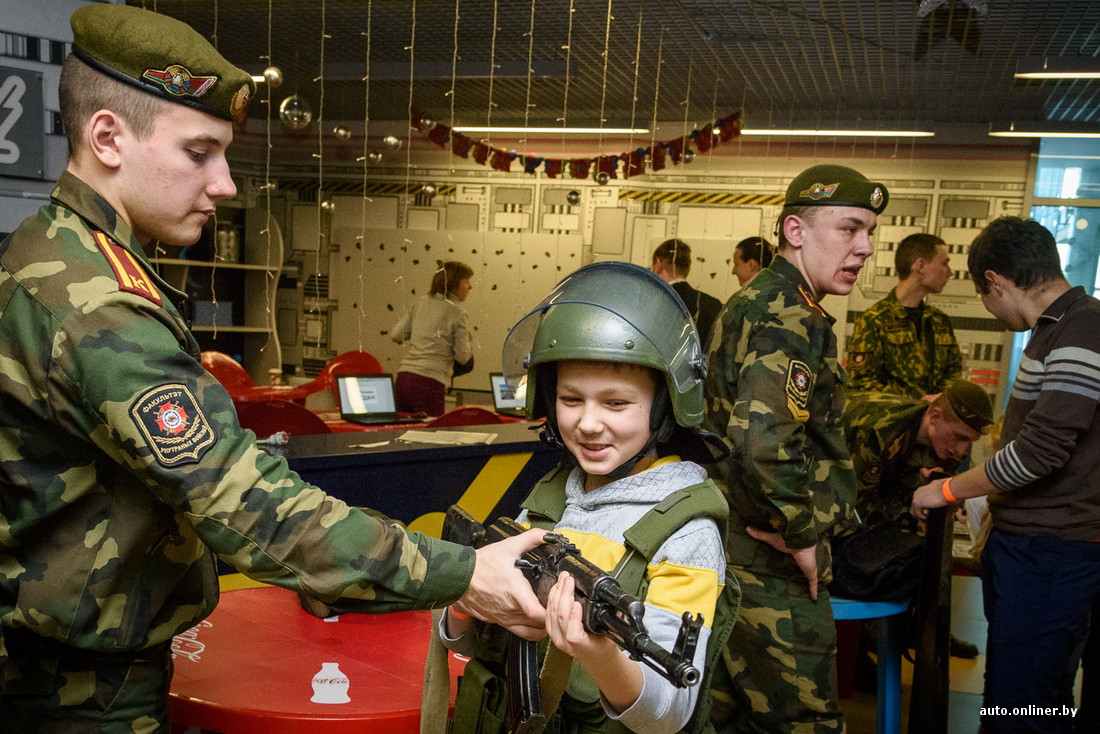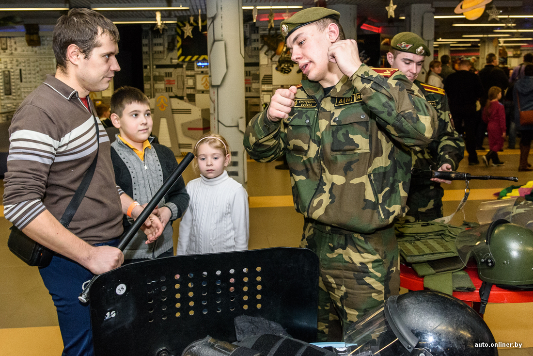 Сегодня в Минске на территории аквапарка «Лебяжий» прошло праздничное мероприятие для детей и взрослых, посвященное Дню защитника Отечества. Внутренние войска МВД продемонстрировали свою новейшую экипировку, а сотрудники спецподразделения УГАИ МВД «Стрела» показали новый автомобиль — BMW 3-Series.