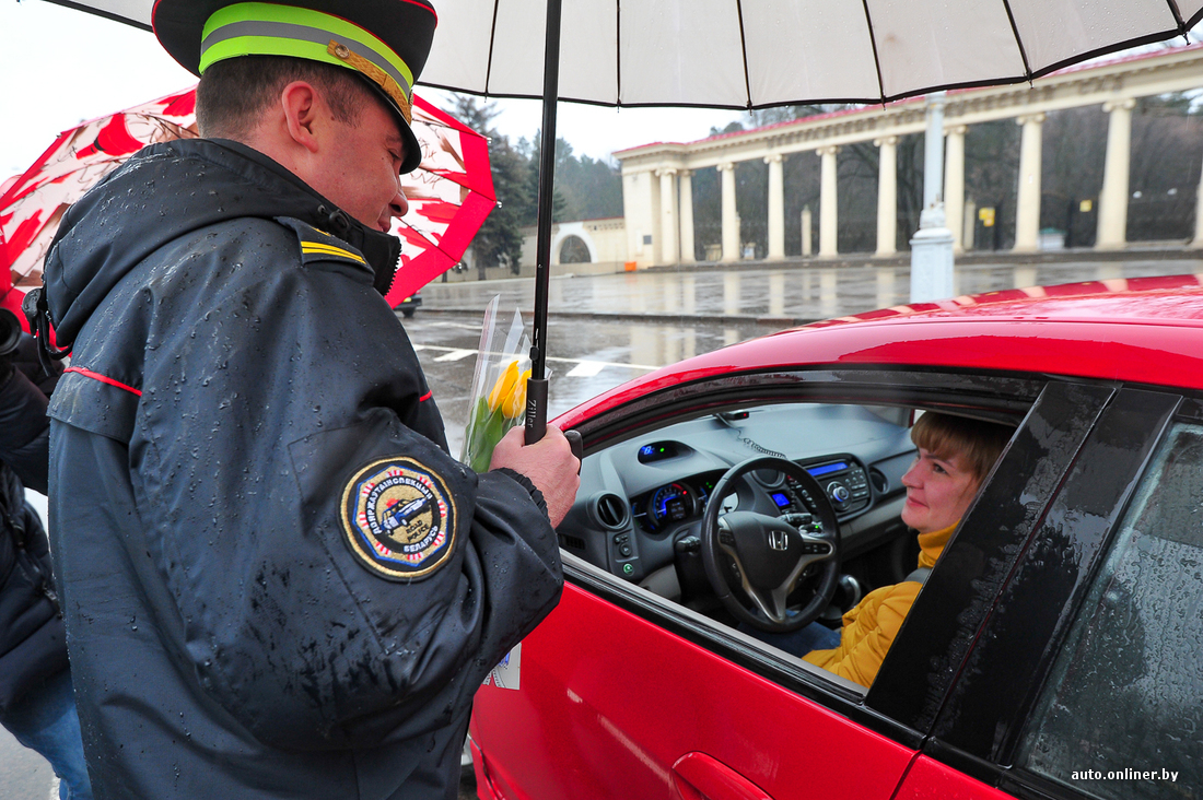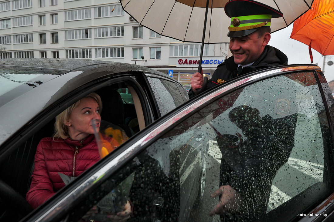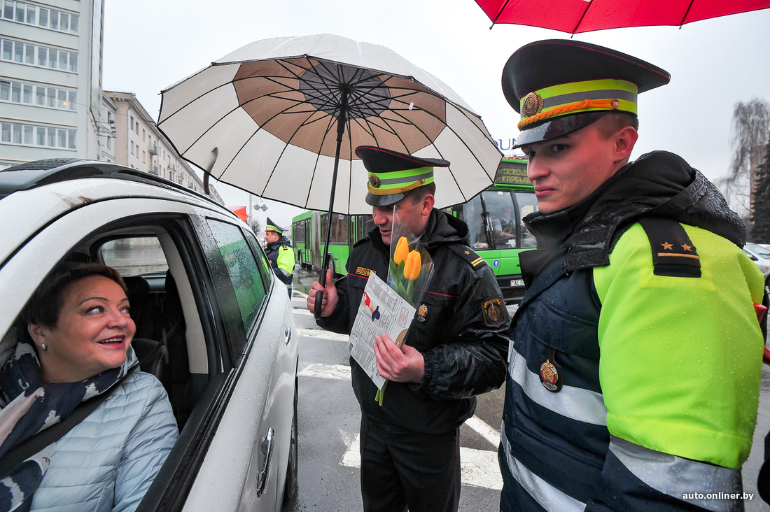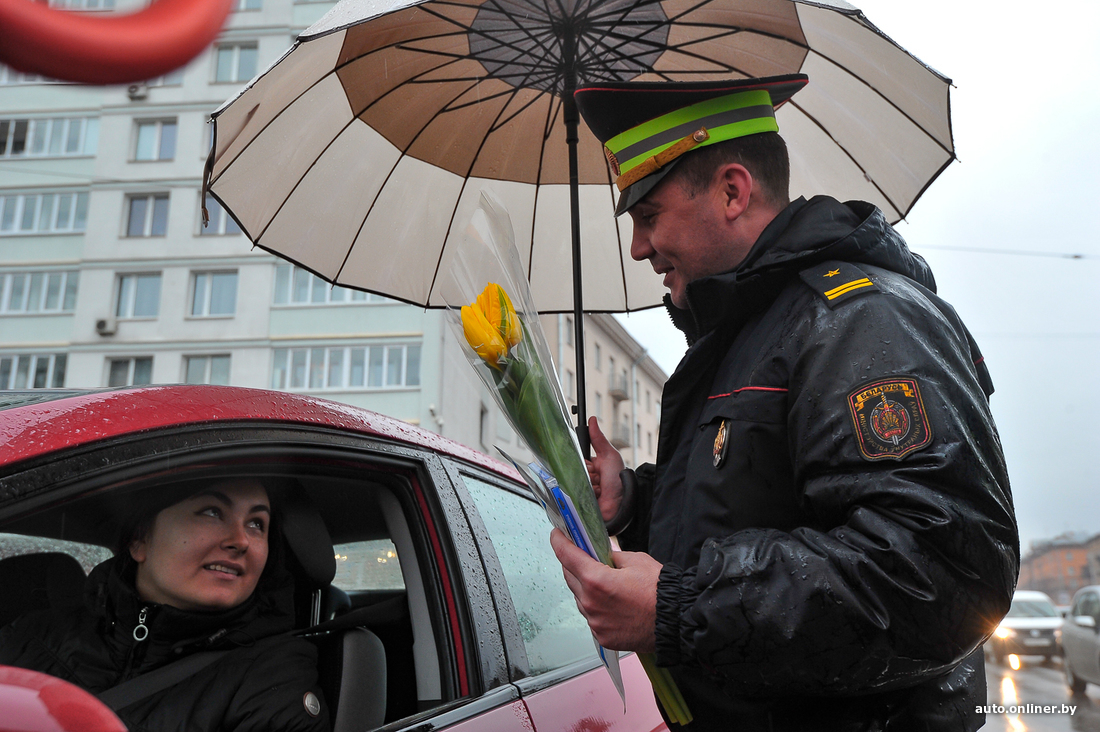 В столице Минская ГАИ и спецподразделение УГАИ МВД «Стрела» вышли под дождь, чтобы накануне праздника 8 Марта вручить подарки водителям-женщинам. Сегодня вполне законной причиной остановки стало вручение желтых тюльпанов, сертификатов на мойку и CD с ПДД. Девушки, казалось, были только рады остановиться по требованию. Улыбки и цветы в этот дождливый день — в нашем фоторепортаже.
