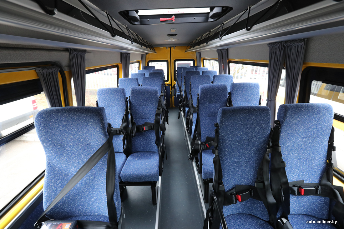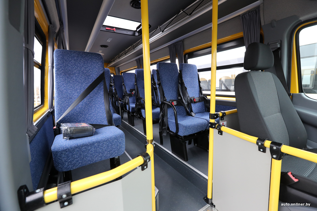 Россияне привезли в Минск две версии моделей для перевозки людей. Первая — школьный автобус Sprinter Classic, который рассчитан на 20 детей и двоих сопровождающих. В салоне предусмотрено все для комфортной поездки: на подиуме установлены детские кресла с 4-точечными ремнями безопасности, вместительные багажные полки оснащены отдельной подсветкой и системой фиксации.