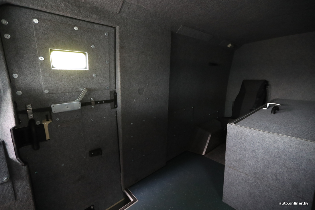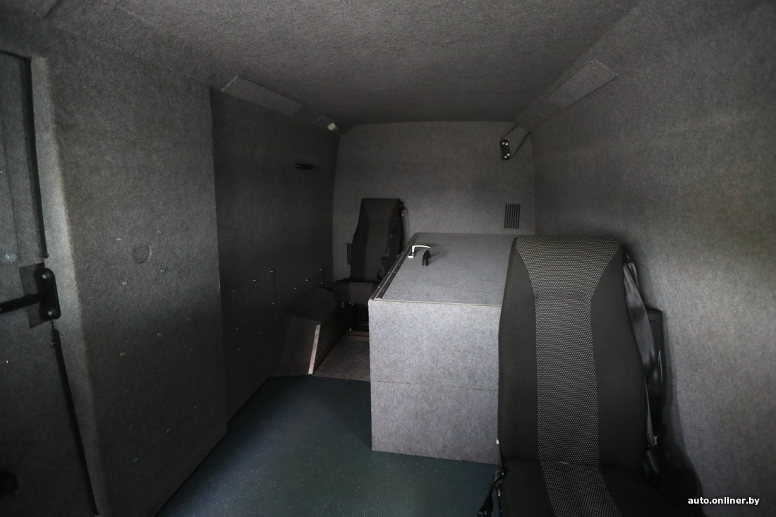 Для равномерного распределения дополнительного веса усилена передняя поперечная рессора и установлен стабилизатор задней оси. В пассажирском отсеке имеются 4 сиденья для инкассаторов и ящик для хранения грузов. С водительского места можно дистанционно управлять задними дверьми в грузовой отсек. Двери автомобиля поставляются с механическими ригельными замками. В моторном отсеке дополнительно предусмотрено автоматическое устройство пожаротушения.