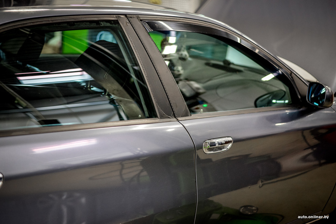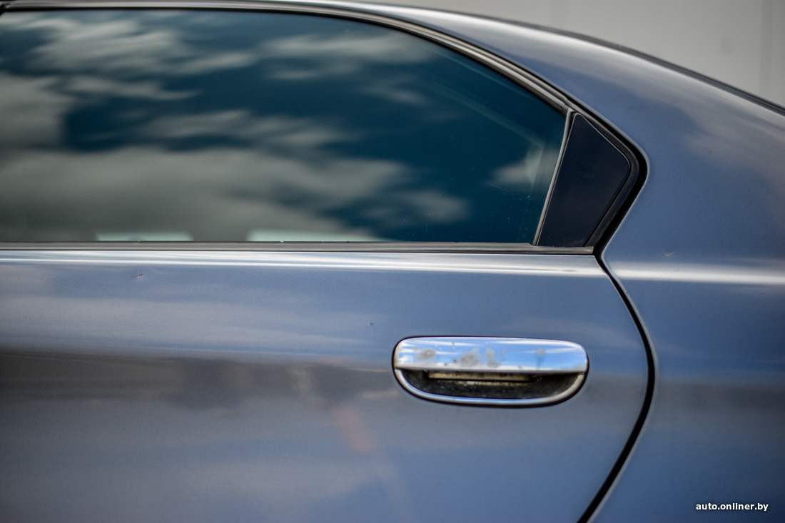 Обратили внимание и на нюансы кузова: «Потертости краски на крыше в районе задних дверей. Снизу, около порогов, в той же области ЛКП отпескоструилось, но не заржавело. Заметны дефекты покрытия на всех ручках дверей, на логотипе, на капоте. В салоне многие элементы оклеены пленкой „под карбон“, в дверях дополнительно установлены колонки».