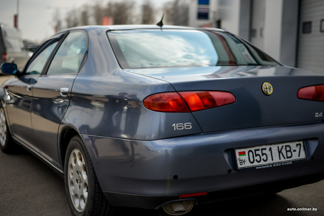 «Alfa Romeo 166 — седан бизнес-класса, созданный дизайнером Вальтером де Сильвой, продается за $3999 в эквиваленте, — представляет товар Александр. — Машина 2000 года выпуска, в Беларуси было только два хозяина. Пробег — 245 тыс. км. Авто приводит в движение надежный дизельный 2,4-литровый двигатель мощностью 136 л. с., заводится в любой мороз. Масло требует только синтетическое, от замены до замены ни грамма доливать не нужно. Коробка — механическая, 6-ступенчатая. Подвеска, как и на всех Alfa, очень устойчивая, машина хорошо держит дорогу. Переднюю и заднюю подвеску перебрал 1000—1500 км назад, есть гарантия. Авто в максимальной комплектации, имеется все, кроме „круиза“. Зеркало заднего вида с автозатемнением. Адекватному покупателю — адекватный торг на месте».