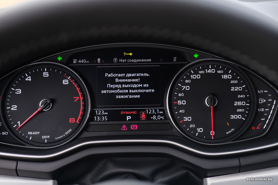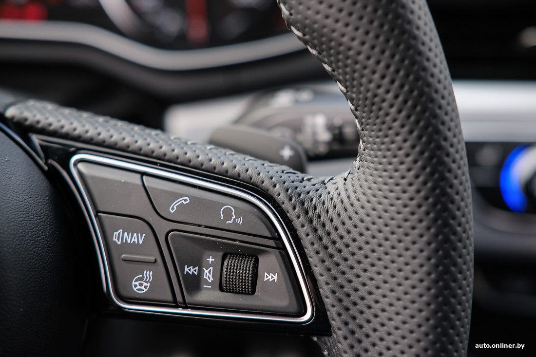 Двухлитровые версии оснащены S tronic с семью ступенями и двумя сцеплениями. Более плавный в переключениях 8-ступенчатый «автомат» — достояние топовых 6-цилиндровых версий. 370 Н·м распределяются между осями в пропорции 60 на 40 в пользу задней оси, поэтому в повороты можно буквально «ввинчиваться». Выезжаю с дилерской парковки и за пару секунд вливаюсь в поток проспекта Независимости. Пик крутящего момента достигается уже при 1600 оборотах. С таким раскладом гонять стрелку спидометра туда-сюда в городском режиме — одно удовольствие. Сколько нажал — на столько разогнался.