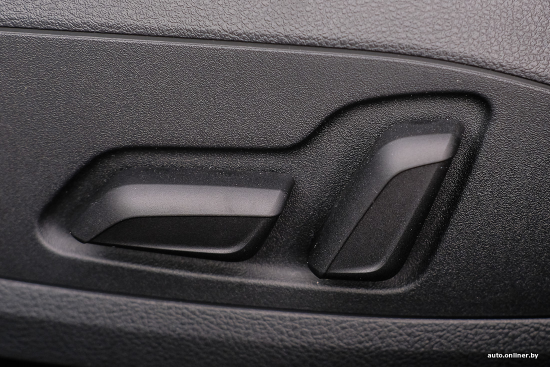 Центральный тоннель широк. Между кресел — удобный подлокотник, с регулируемым углом расположения (это опция). Рядом с квадратным «джойстиком» коробки передач (с нефиксированными позициями) разместилась площадка с блоком управления мультимедийной системой (в нашем случае — с самой базовой). Шайба регулировки громкости находится справа от рычага КП. Найдешь не сразу, зато так намного удобнее, чем тянуться к консоли. Глубже — по ту сторону подстаканников — прячется кнопка запуска двигателя. Жмем на нее!