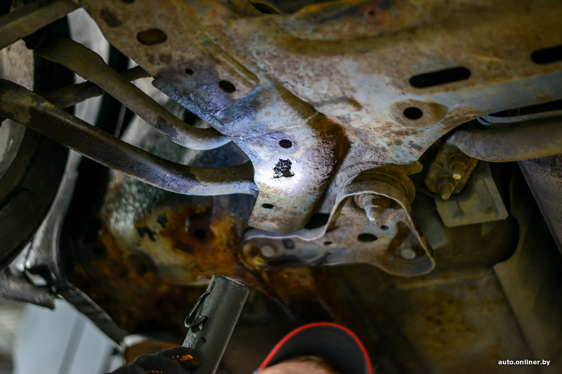 Разбор поломок со стороны мастеров СТО занял немало времени. Список проблем оказался довольно внушительным. «Следует заменить задние и передние тормозные колодки, — начал перечисление специалист. — Стучит рулевая рейка. Непригоден задний нижний рычаг передней подвески, стойки стабилизатора, сальник правой и левой полуоси, пыльник ШРУСа левой полуоси. Из одной шины вылез корд, нужна новая. Глушитель „сечет“. Перечислять все неисправности задней подвески нет смысла, нужно перебрать все: от сайлент-блоков до отбойников амортизатора. Советуем заменить ее полностью».