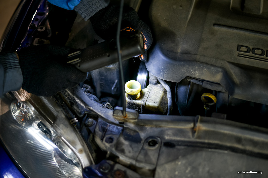 «Также обнаружили течь масла коробки передач, — продолжает мастер. — Жидкость гидроусилителя мутная, также подлежит замене. В расширительном бачке радиатора по какой-то причине нет антифриза. Уровень масла критичен — щуп просто сухой. Кроме того, не горят передние габаритные огни. Компьютерная диагностика показала ошибки по системе обогрева лямбда-зонда. Штатный лямбда-зонд заменен на универсальный, но, скорее всего, с нарушением технологии замены. Дело в том, что при установке универсального лямбда-зонда нужно использовать специальные коннекторы, которые идут в комплекте, паять его ни в коем случае нельзя — нагрев проводов выводит кислородный датчик из строя».