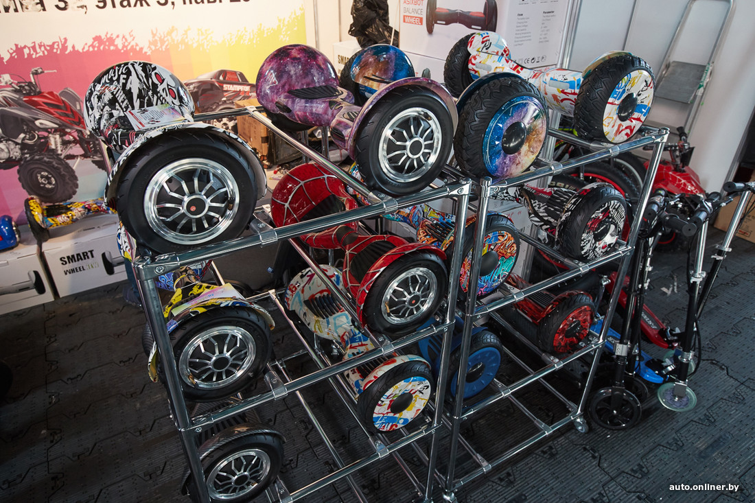 На выставке работает неожиданно большое количество стендов, где представлены мотоциклы, велосипеды, экипировка, гироскутеры, запчасти и различные аксессуары к двухколесным транспортным средствам. В Футбольный манеж привезли также массу кастомных байков и велосипедов — в последнее время подобный тюнинг становится все более популярным в Беларуси. Любителям ностальгии понравится коллекция скейтбордов, созданных в СССР.