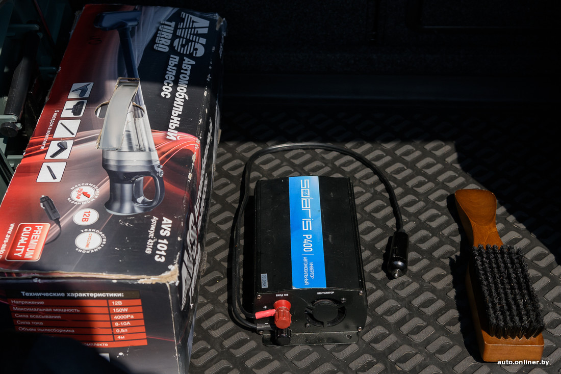 Считаем, сколько устройств регулярно используются в автомобиле, а стало быть, питаются от энергосистемы машины (в салоне три прикуривателя — возле приборной панели, около заднего сиденья и в багажнике): два телефона, планшет, ноутбук, видеорегистратор... У Владимира также припасен инвертор, что упрощает зарядку девайсов. Но ведь, с другой стороны, это еще больше усиливает нагрузку на аккумулятор (вспомните также штатные устройства — магнитолу, климат-контроль, навигацию и пр.).