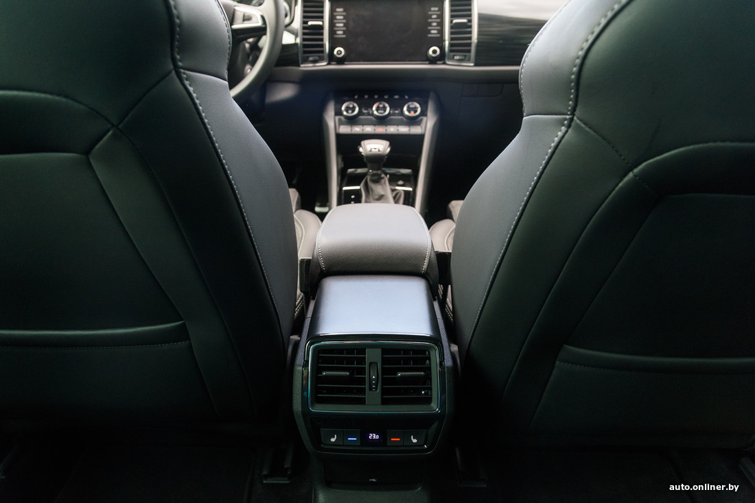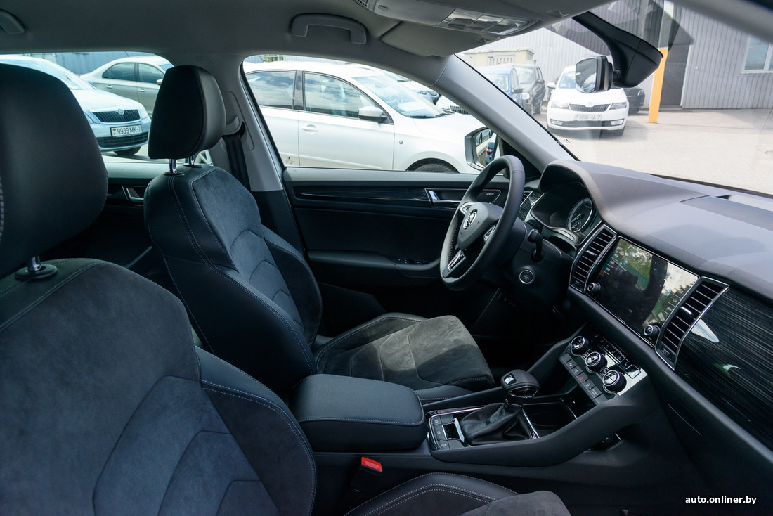 Чешские комплектации, представленные сейчас на нашем рынке, отличаются от тех, что будут в автомобилях российской сборки. Базовая модификация Kodiaq у нас представляется с 1,4-литровым бензиновым мотором TSI (150 л. с.), полным приводом и 6-диапазонным DSG. В стандартной комплектации — бесключевой доступ в салон, полный электропакет, «лифт» передних сидений, обогрев лобового стекла и наружных зеркал, круиз-контроль, 2-зонный климат, подогрев руля и мн. др.