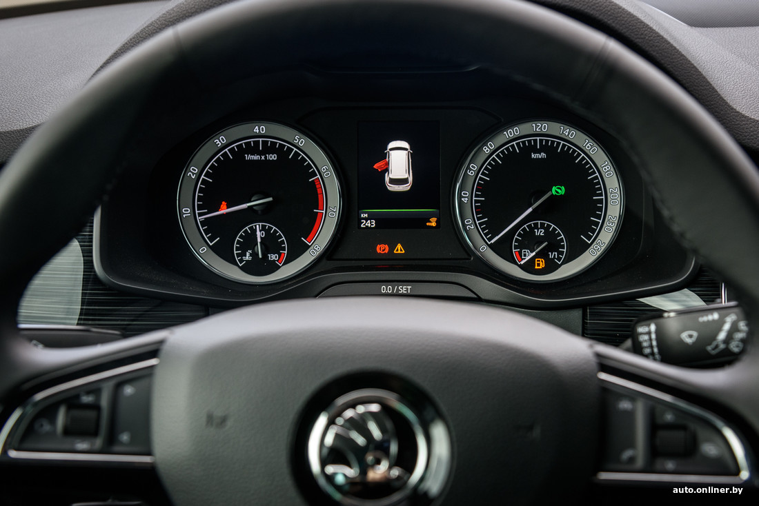 Конечно, есть и привычные для владельцев Skoda приятные мелочи — зонтики в передних дверях, скребок в лючке бензобака, выдвигающиеся пластиковые «щиты» на четырех дверях, которые позволят избежать мелких повреждений на парковках.
