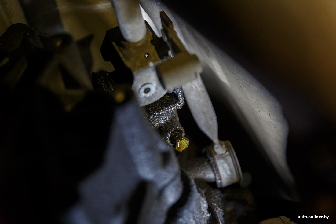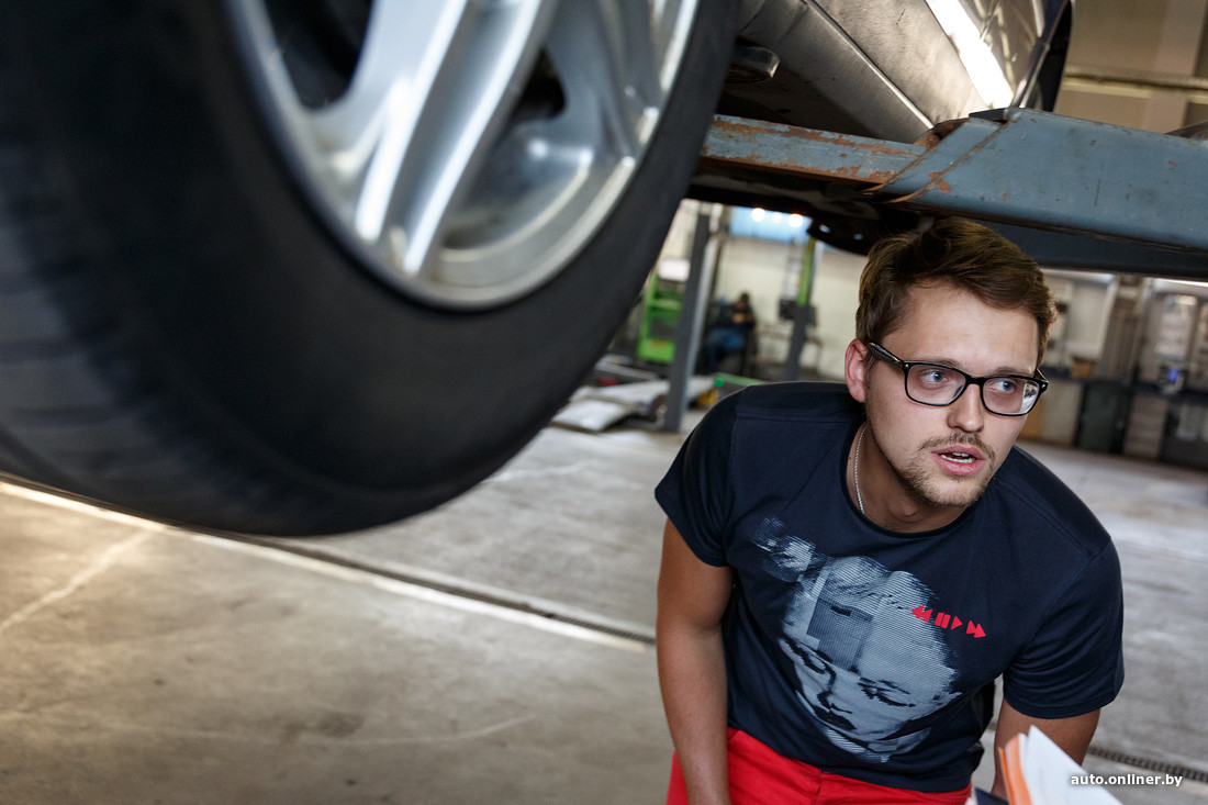Специалисты СТО обратили внимание на сколы и царапины, что свойственно машинам, выпущенным больше 15 лет назад. Кроме того, мастера указали на ржавчину на передних крыльях, мутные после шлифовок фары и отслоение ЛКП на переднем бампере. На подъемнике обнаружилось, что необходимо заменить сайлент-блоки задней балки. Также разрушена опора КПП, из-за чего коробка просела (это может выражаться в лишнем гуле при движении).