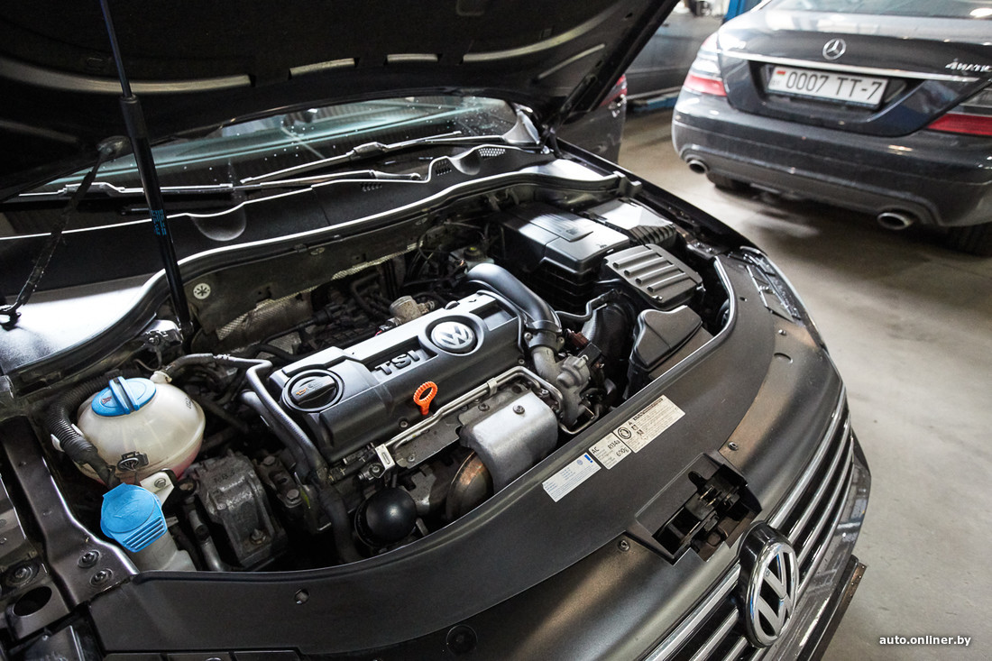 В объявлении нынешний хозяин машины указывает: «Продается седан с бензиновым мотором 1,4 литра, механической коробкой (не автомат DSG), передним приводом. Пробег — 146 тыс. км. Почти максимальная комплектация: двухзонный климат-контроль, легкосплавные диски, система контроля стабилизации, навигация, громкая связь, контроль полосы, подсветка поворотов, передние и задние парктроники, складывающиеся зеркала, система контроля давления шин, помощь при подъеме, система Start/Stop, USB, датчик света, датчик дождя, автозатемнение и подогрев зеркал. Автомобиль в отличном состоянии. На данный момент вложений никаких не требует, все работает идеально. Чистый „немец“. Пригоняли пару лет назад, чему есть все подтверждающие документы. Обслуживается в Минске на официальном сервисе. На последнем ТО (на 140 тыс. км) проведена замена масла, всех фильтров, помпы, радиатора печки, цепи ГРМ. В качестве бонуса — два комплекта ковриков и дисков (R17 „лето“, R16 „зима“). Цена — $12 тыс. в эквиваленте».