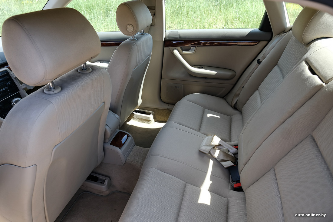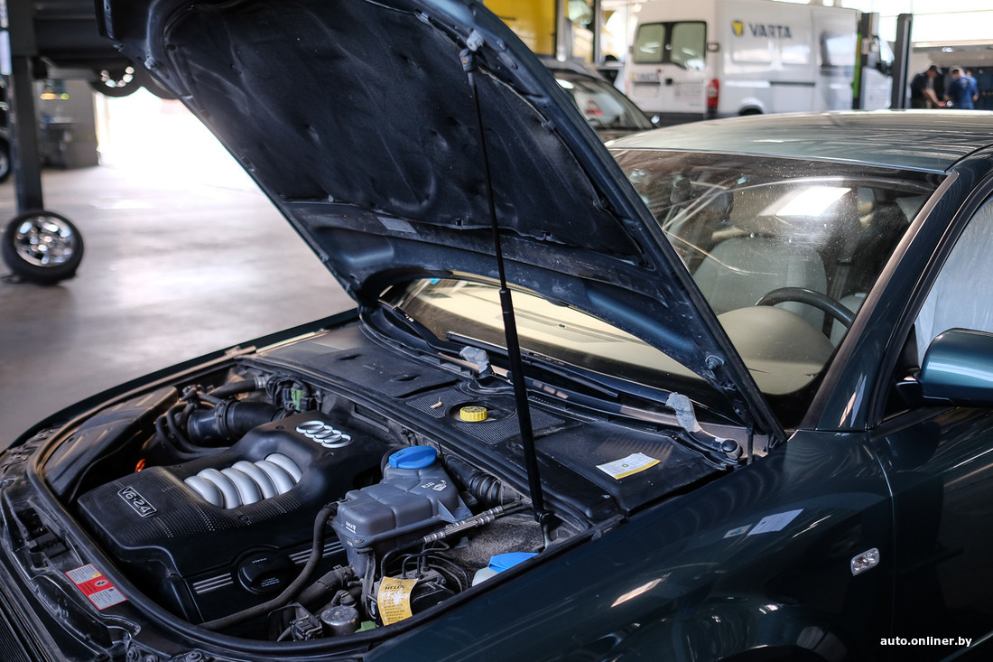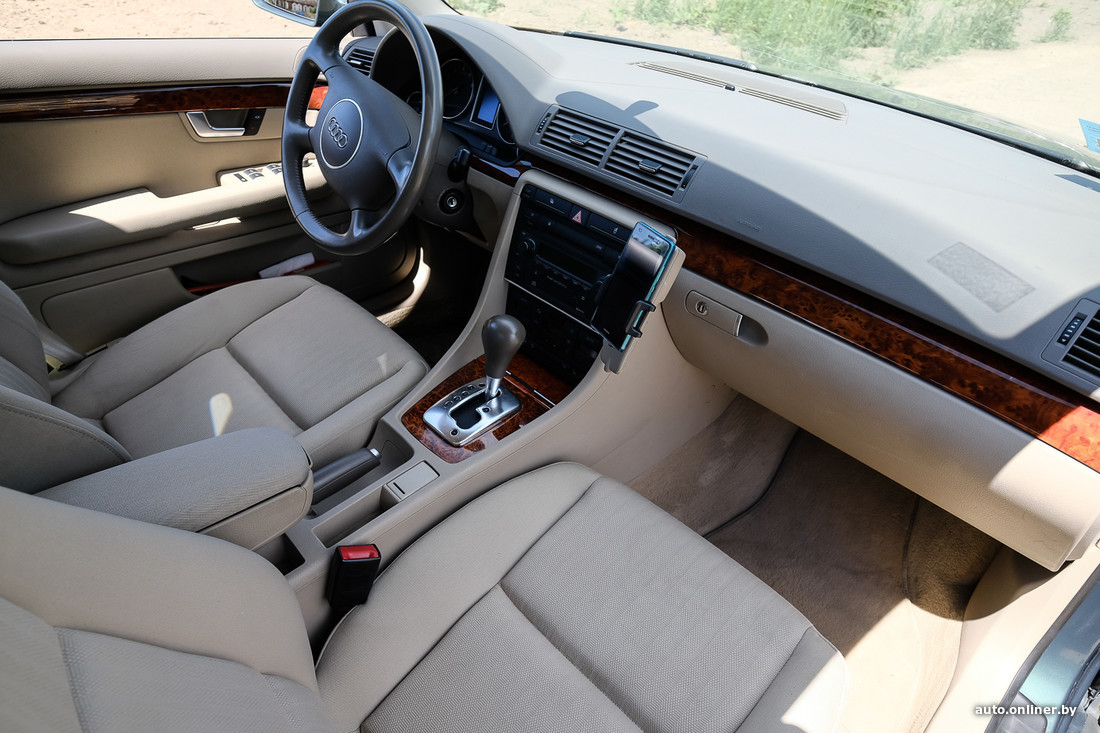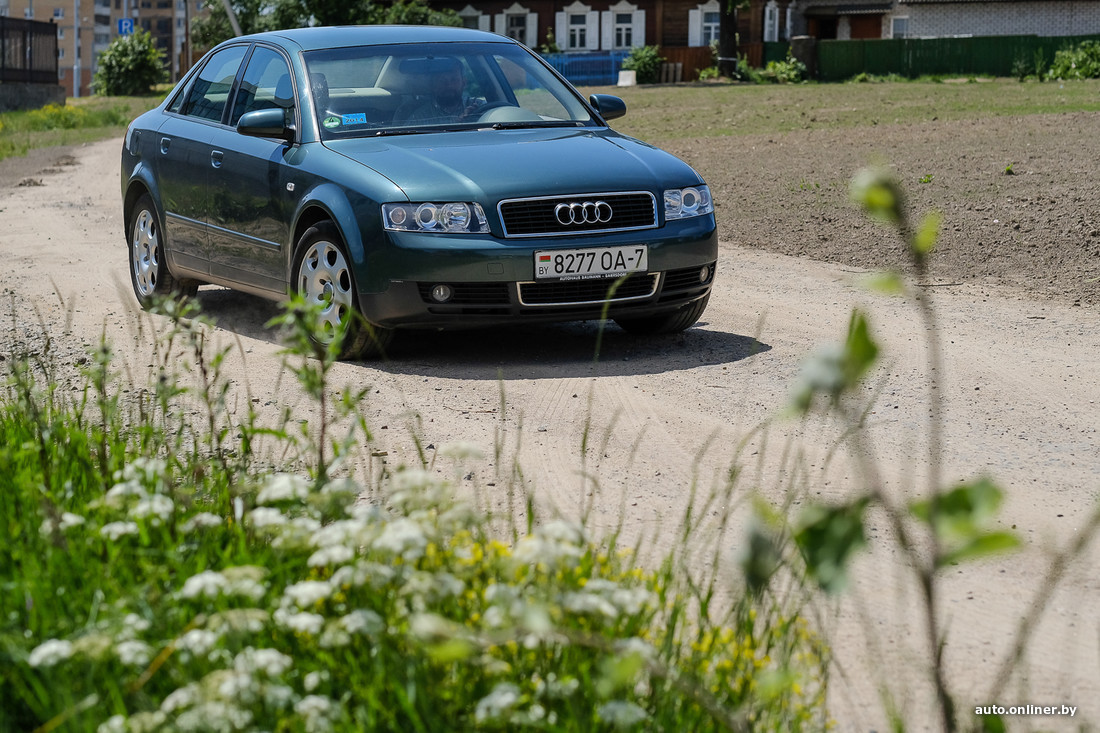 «Продается зеленый седан Audi A4 (B6) 2002 г. в. с бензиновым двигателем объемом 2,4 литра и автоматической коробкой. Цена уже с вычетом всех недочетов — $6,3 тыс., — сообщает общую информацию о модели продавец, автоинженер по образованию. — Один владелец в Германии, один в Беларуси. Пригонял сам для себя, остались бриф и таможенная декларация. На пробеге в 120 тыс. км сделал полное ТО, заменил ГРМ и масло в АКП. Все остальные расходники менял по графику. Двигатель BDV (125 кВт / 170 л. с.) — один из самых надежных в линейке VAG. Он без турбины, соответствует стандарту Евро 4. В вопросе ресурса этот агрегат предпочтительнее, нежели 1,8T или FSI. Расход за городом — 7 литров на сотню, внутри МКАД — 12, в смешанном цикле — 10. Коробка — вариатор Multitronic (FRC) с функцией Tiptronic, работает как часы».