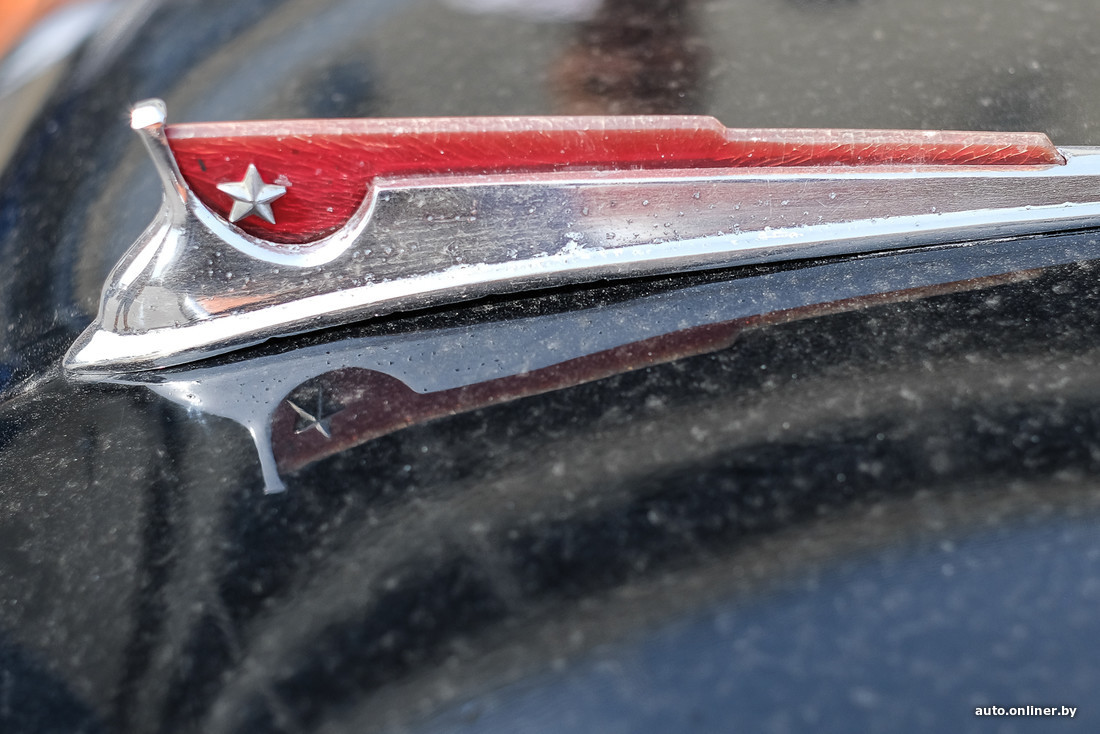После ретропарада автомобиль долгое время практически не ездил, и мотор не хотел заводиться. Попытались воспользоваться пусковой рукояткой, которую еще называют кривым стартером. Пару раз провернуть коленвал удалось, но не более того… Впрочем, проблема оказалась куда банальнее: разрядился аккумулятор. Через несколько минут двигатель заработал как новенький.