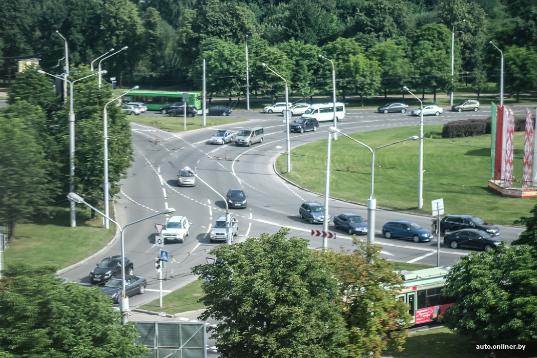 — Этот узел очень популярен среди владельцев видеорегистраторов, — начинает разбор Юрий Краснов, поеживаясь под лучами нежаркого июльского солнышка. — Самый главный вопрос, который задают минские водители: доколе? Я знаю ответ... Вынужден вас разочаровать, но никогда это не закончится. Всегда найдется водитель, который поедет вразрез и будет мешать.