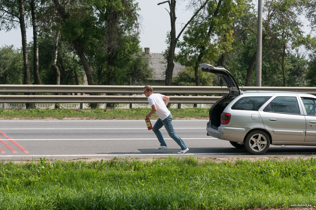Реакция этого водителя была по-настоящему горячей. Мимо «дымившего» Volkswagen Golf проехали десятки автомобилистов — профессионалов и любителей. А Максим Жук не смог. Он проявил чудеса реакции. Мгновенно затормозил, быстро открыл багажник, достал огнетушитель и бросился на помощь. Не было сомнений, что он ринулся бы в пламя, если потребовалось бы. Но участники социального эксперимента вовремя остановили.