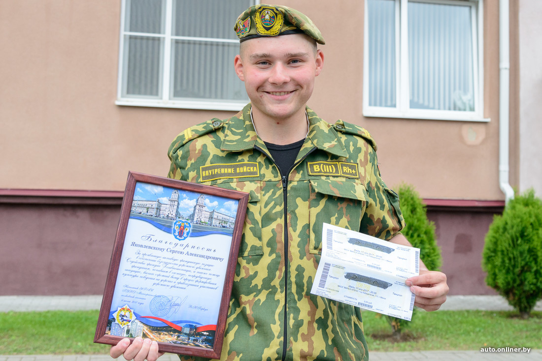 Ну а пока ему надо решить одну приятную задачу — с кем пойти на концерт Depeche Mode, который пройдет в Минске в понедельник, 17 июля. Вместе с благодарностью сотрудники Минской ГАИ вручили отважному младшему сержанту два билета на выступление легендарной группы.