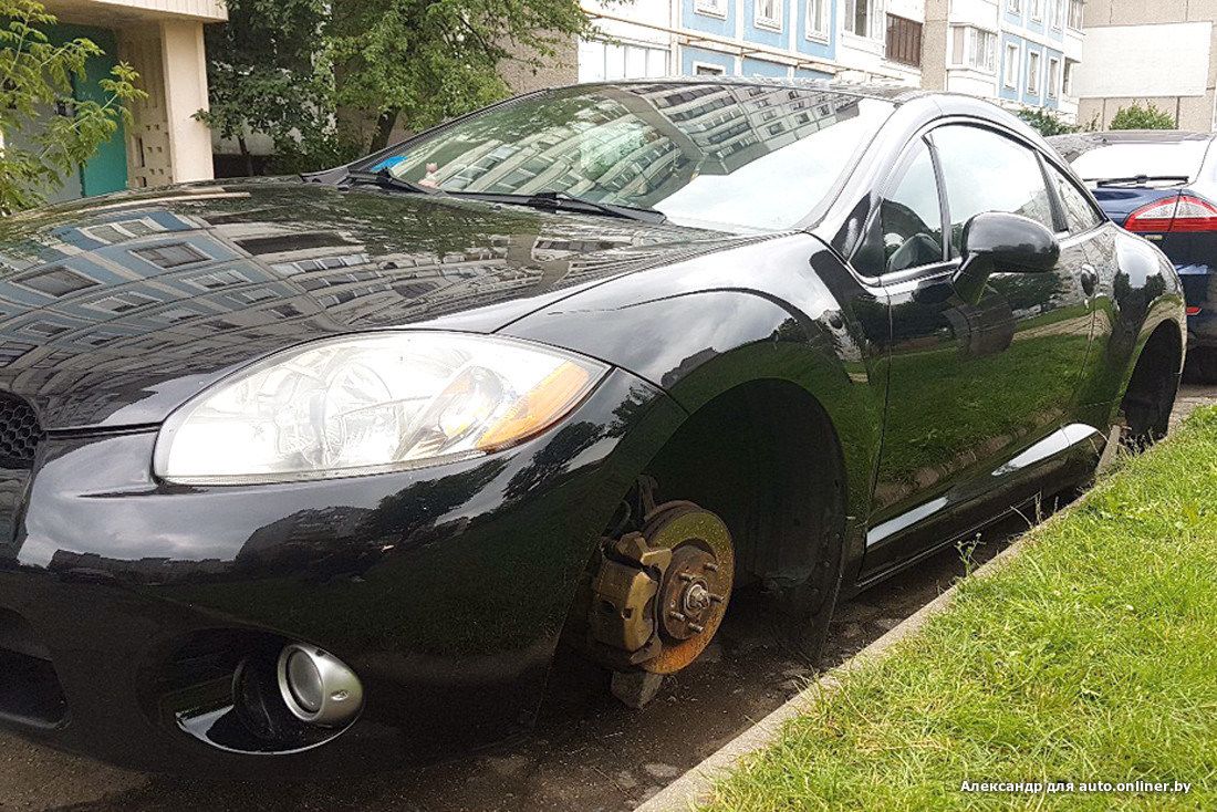 Ночью на улице Бачило в минском микрорайоне Шабаны кто-то оставил Mitsubishi Eclipse 2006 года выпуска на кирпичах. Сняли два колеса американской фирмы Zinik. Сняли бы и оставшиеся, но, судя по всему, злоумышленников спугнули.