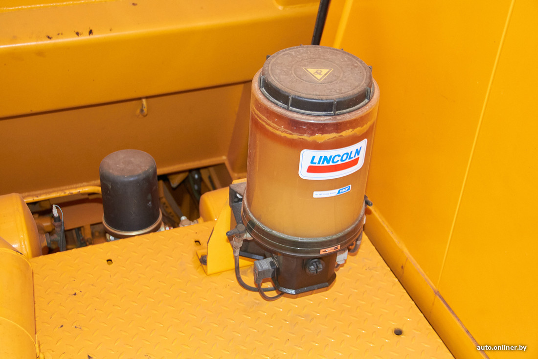 Но полагаться только на поливооросительные машины было бы неправильно. Поэтому в каждом карьерном самосвале предусмотрена централизованная система смазки. Конструкция принудительно качает смазку по всем узлам, к каждому — отдельная трубка. Система работает самостоятельно, ориентируется на показатели датчиков. Водителю остается лишь следить за уровнем бака — тот расположен на палубе. Здесь же покоится ящик с двумя мощными аккумуляторами и фильтром. Поговаривают, что, несмотря на все старания, менять его приходится часто — из-за все той же вездесущей песчаной пыли.