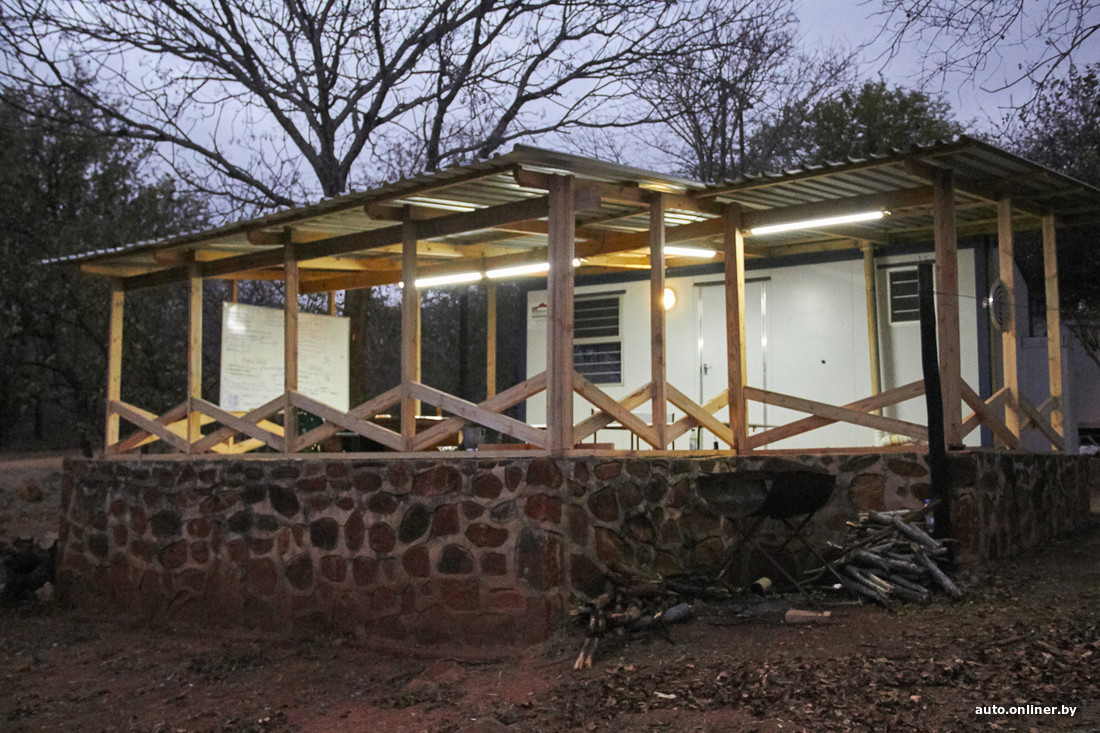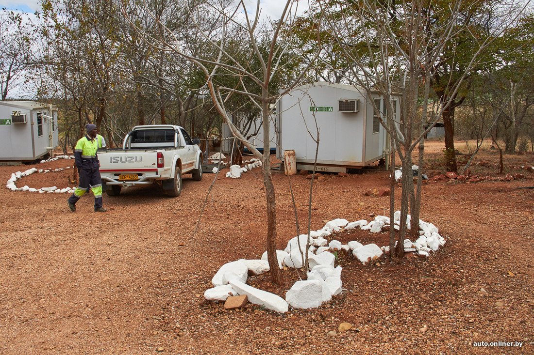 Белорусы, отправившиеся в командировку в Африку, живут довольно скромно, но комфортно. Первые сотрудники прибыли сюда сразу после заключения договора между зимбабвийской ZCDC и дилером SOHRA, еще до поставки первого БелАЗа. Их задачей было обустроить лагерь: жилье, удобства (например, стиральные машины), развлечения, отдых (баня), обеспечение запаса питьевой воды, консультирование местных поваров (какую именно пищу готов принять белорусский желудок) и так далее. Спустя почти полгода я вижу лагерь таким: