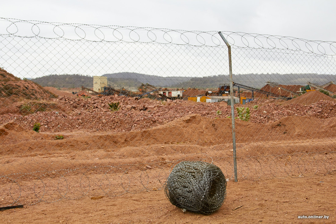 Вернемся к поездке на загруженном пикапе. На выезде с КПП мое внимание обращают на клетку высокого металлического забора с навешенной сверху колючей проволокой. Утверждают, что это подобие камеры предварительного заключения. По словам мужчин, чуть ли не каждое утро здесь появляются новые люди. Кто-то из белорусов уверяет, что видел, как за неизвестными без светоотражающих жилетов бежали охранники с оружием. Для пущей правдоподобности убеждают: сотрудники пользуются M16 и автоматическими винтовками производства ЮАР (скорее всего, Truvelo или Vektor). Говорят, пару раз слышали выстрелы, неоднократно видели и погоню с собаками. Африканец слышит знакомое слово — уже, видимо, выучил его — и вторит: «Sabaska, yes! Am-am. Beware!» Местный работник говорит, что контрабандисты пробираются через дырки в заборе, установленном по периметру разработки, и просеивают песок из определенных мест сквозь сито. Все, что остается, забирают домой и убегают, а там уже как повезет: найдется алмазик или нет. Конечно, сказанные слова похожи на слухи, но проверять все эти утверждения небезопасно. Да и невозможно, не нарушив закон.