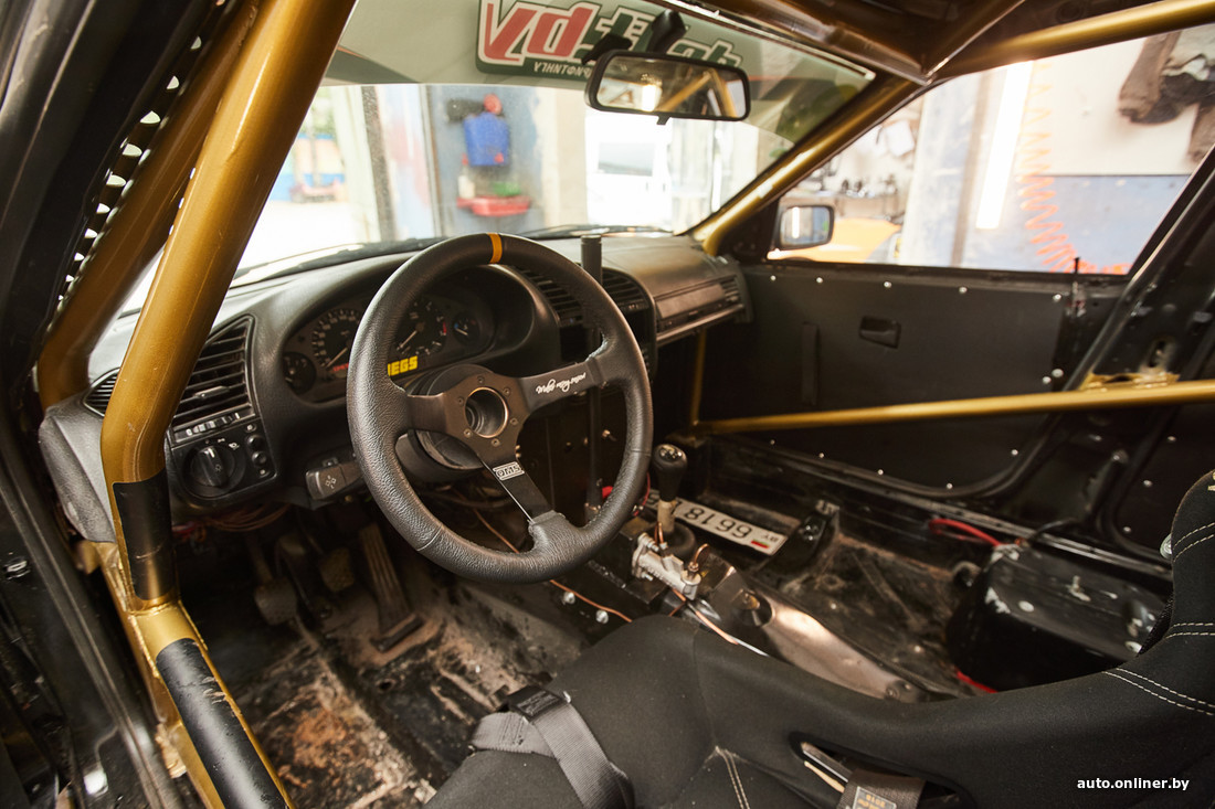 Раллийный автомобиль без каркаса безопасности — камера смертника. «Клетку» для дорабатываемых BMW изготавливают в Беларуси. Никита сам ездил смотреть, как наши ребята варят трубы, и остался доволен результатом. Средняя цена на каркас безопасности — $1300. Она может слегка варьироваться в зависимости от конфигурации. Спортивные кресла стоят в районе $350 за штуку, в $170—200 обходятся ремни. За руль отдается порядка $100. Кроме того, в машине нужно дорабатывать капот и багажник, чтобы они легко открывались, и устанавливать выключатель массы, который позволяет заглушить двигатель как из салона, так и снаружи.