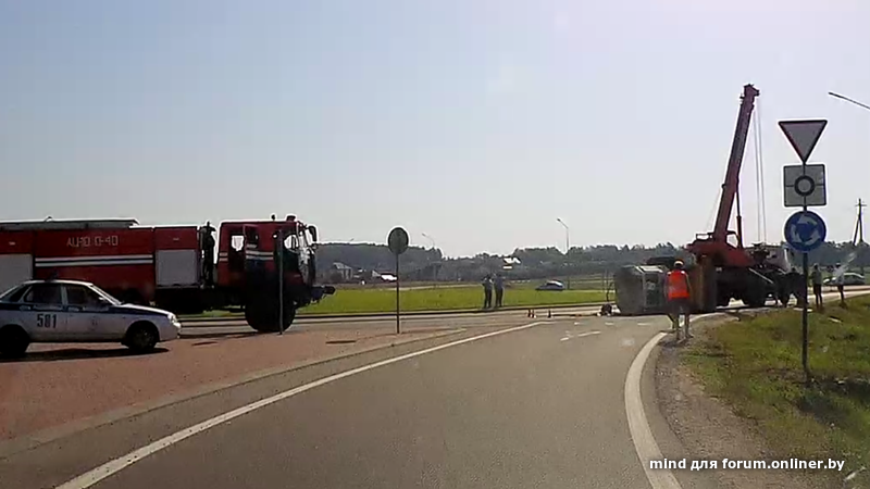 Сегодня утром в Ошмянах во время перевозки на прицепе упал каток. Об этом на форуме Onliner.by сообщил читатель mind, заодно приложив фотографии с места происшествия. На место аварии выезжала машина МЧС, а тяжелую технику поднимали с помощью автокрана. Судя по изображениям, на проезжую часть из катка вылились технические жидкости.