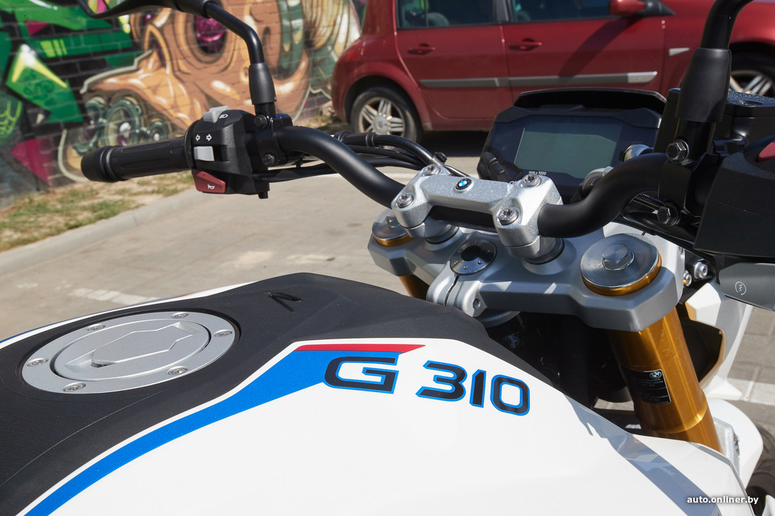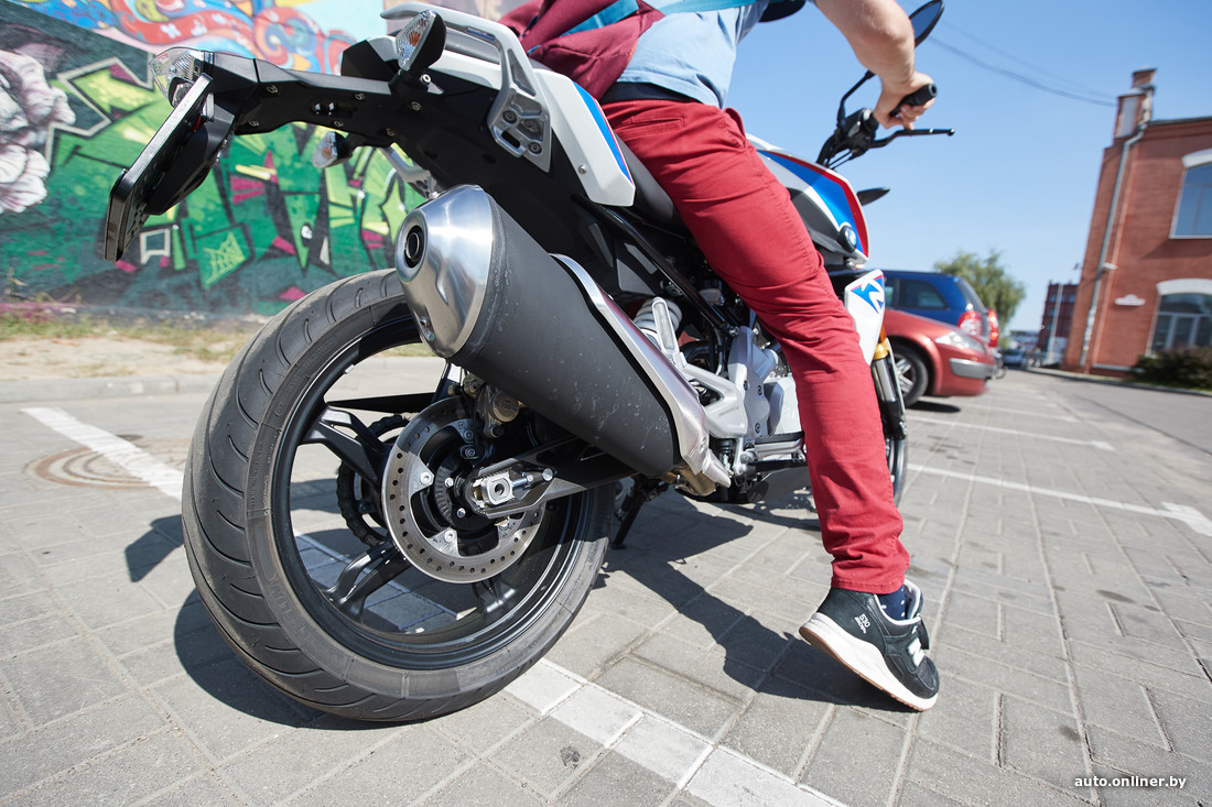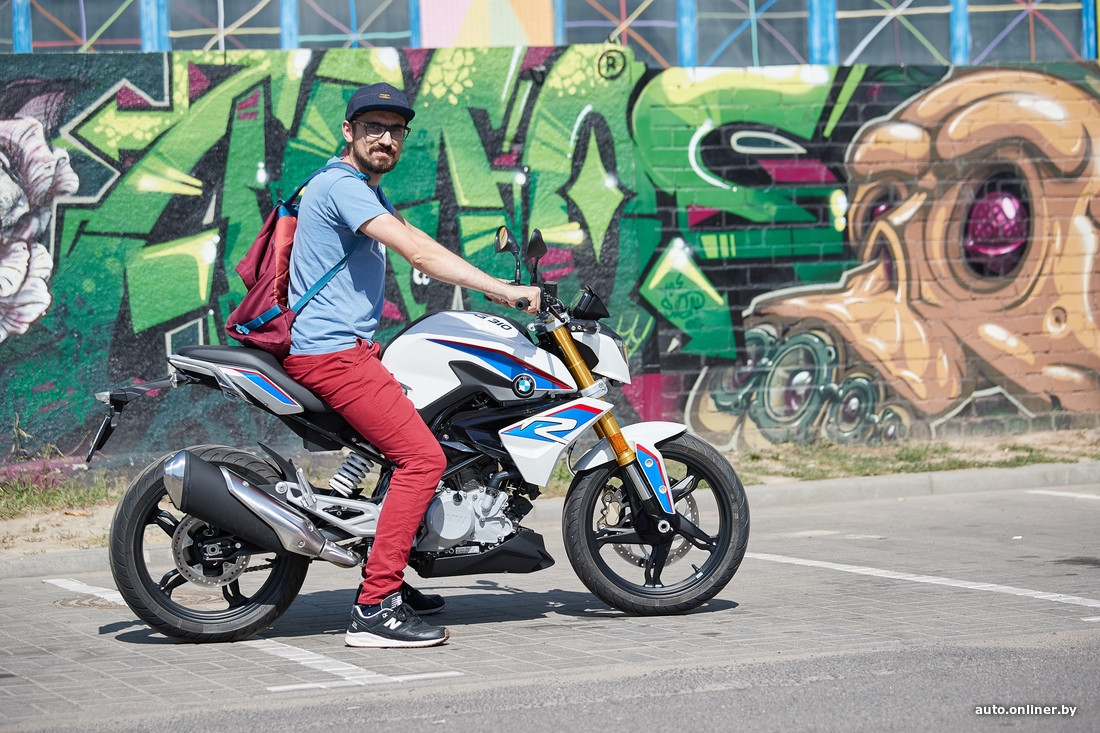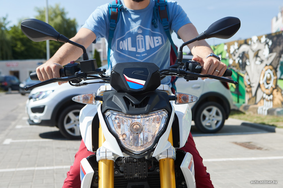 Когда я покупал свой первый байк, я сделал почти все ошибки, которые обычно совершают начинающие мотоциклисты. Мотоцикл был слишком дорогой, тяжелый, имел плохую управляемость, не слишком удобную посадку и явно избыточную мощность. Зато он был очень красивый. Удовольствие от покупки я получал в основном от созерцания его в гараже и на парковке. Учиться ездить на нем было крайне некомфортно и, кроме того, небезопасно. Когда мне предложили попробовать прокатиться на новом G310R, я воспринял это без особого энтузиазма: это явно не тот байк, который хочется поставить на обои в телефоне. Но в процессе езды стало понятно — вот та модель, которую я бы посоветовал купить себе тогда, когда выбирал первый мотоцикл.