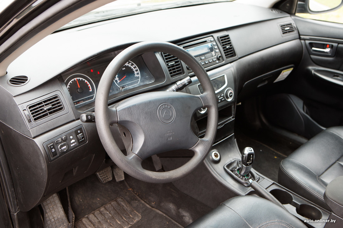 В салоне тоже все напоминает старую добрую SC7, с которой мы неоднократно встречались по долгу службы. Простенькие кресла без внятной боковой поддержки, не лучшая эргономика, совсем дешевый руль. В глаза бросается рычаг, расположившийся на месте старой коробки передач. Как уже неоднократно отмечалось в интернете, это деталь от BMW. Не будем судить строго — перед нами всего лишь прототип. Здесь и зазоры пляшут, и в бардачке какие-то провода, и много других огрехов. Ведь проектировался данный автомобиль не для создания приятного впечатления об интерьере, а в качестве достойного опытного образца для тестов электрической силовой установки.