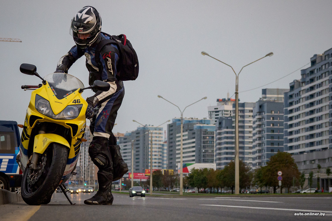 Поговорите с мотоциклистами: мотосезон завершают не на официальных мероприятиях — его закрывает погода. Многие продолжат ездить «до упора», пока не пойдет первый снег. И еще одна особенность: самое напряженное время в плане дорожной безопасности — это как раз начало сезона и его конец. Каждый вроде бы понимает, что и дороги не в том состоянии, и погода все хуже, а желания покататься — хоть отбавляй. Поэтому на днях на патрулирование городских улиц и проспектов отправились сотрудники ГАИ Минска и спецподразделения МВД «Стрела», а с ними и корреспонденты Onliner.by. Так обоснованы ли жалобы на мотоциклистов, какое самое распространенное из нарушений и кого пришлось преследовать с маячками?