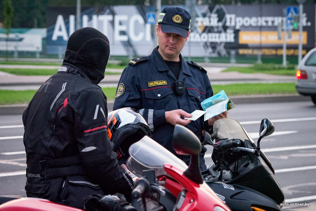 — Водитель мотоцикла номер [называет регистрационный номер. — Прим. Onliner.by], вправо принимаем и останавливаемся, — повторил инспектор.
