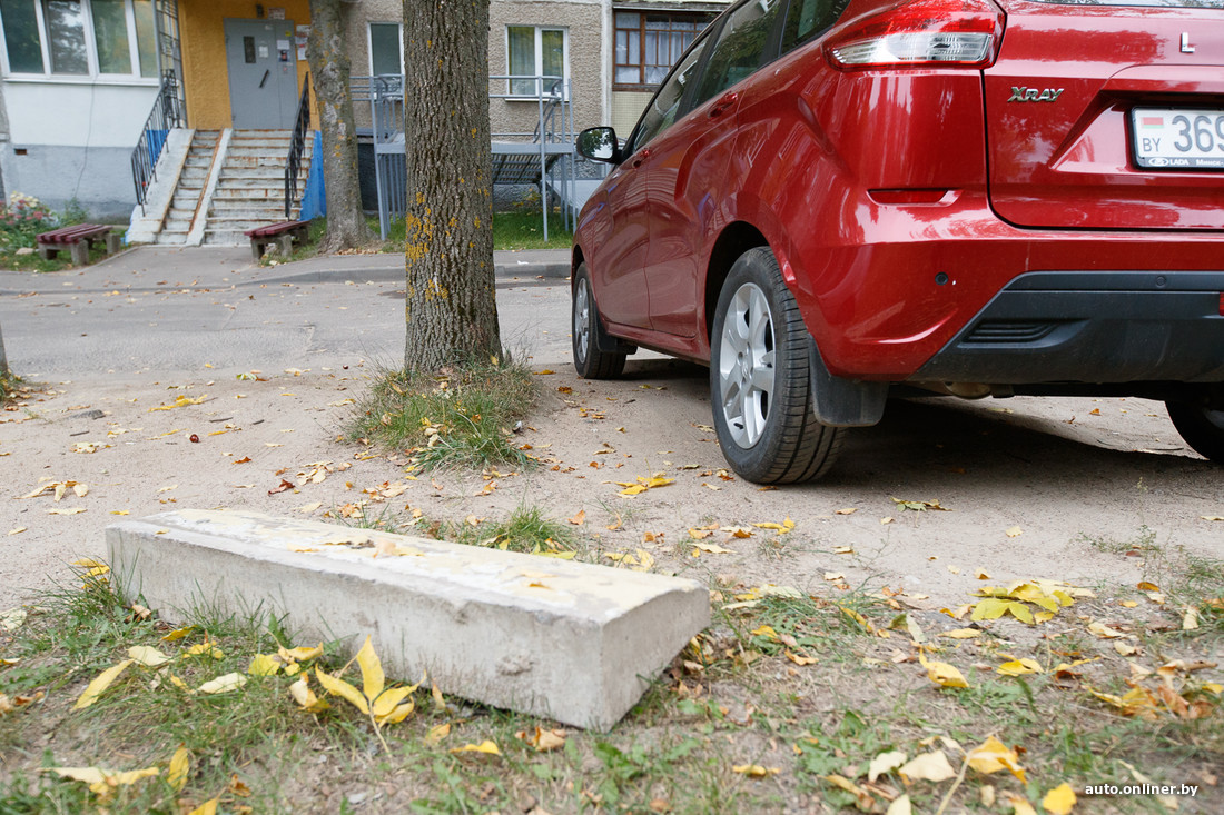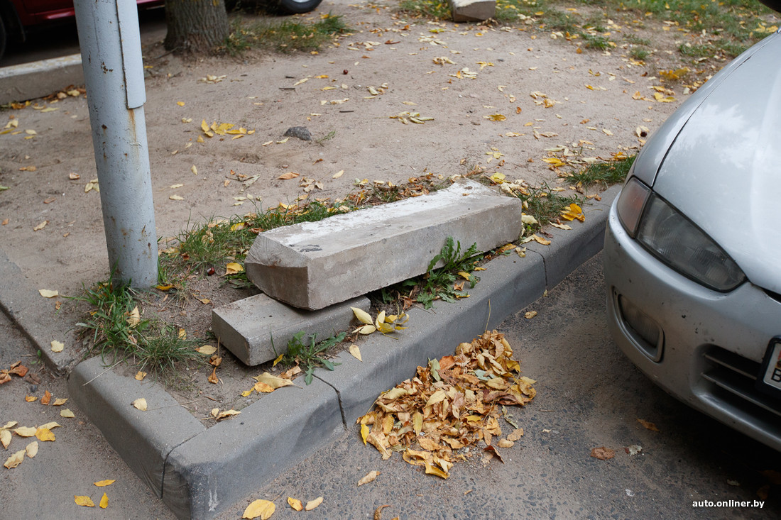 Что изменилось после выхода первой публикации? Коммунальщики предприняли робкую попытку отодвинуть автомобили с газона: положили бордюры и установили полусферы. Нужно ли говорить, что это оказалось лишь временной мерой.