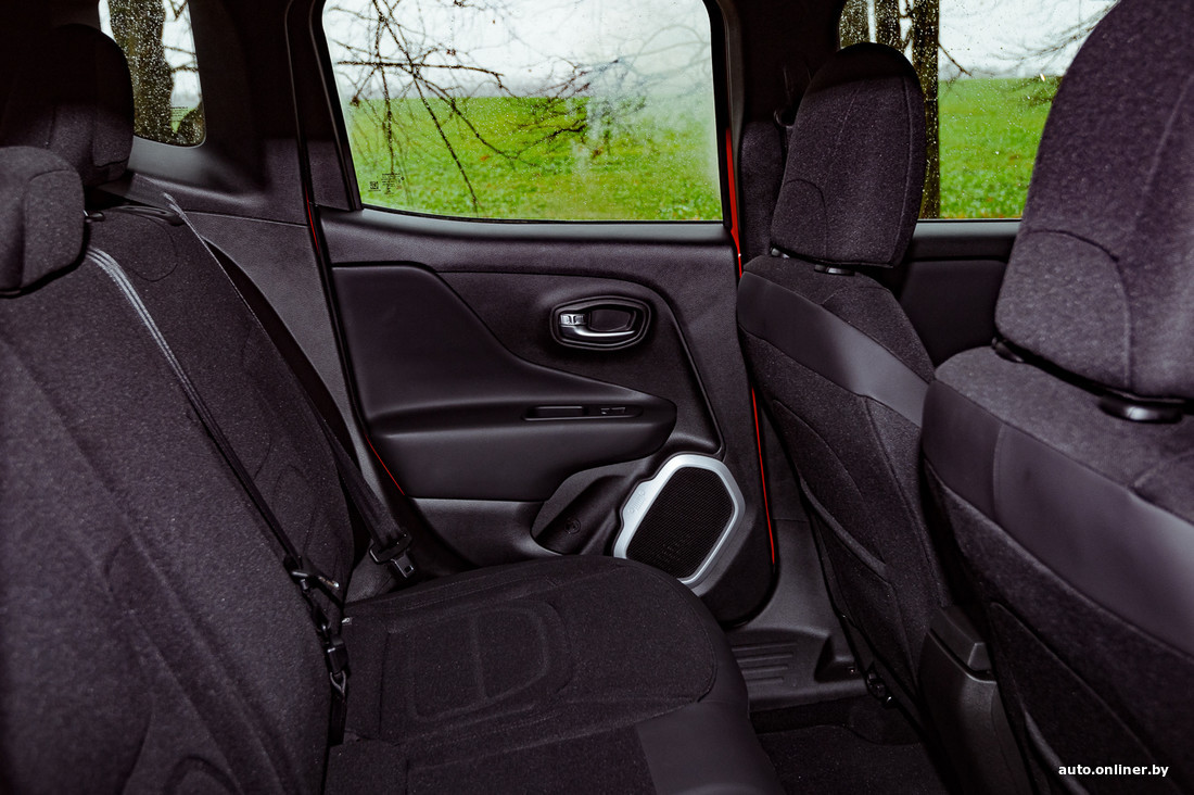 При этом салон не такой интересный, как экстерьер. Простенькие кресла, пухлый руль с кучей кнопок, незамысловатая мультимедийная система. Формы преимущественно плавные, напоминающие Fiat. Но интерьер у Renegade свой, не имеющий ни одной итальянской детали. Водительское место можно настроить под человека любого роста, и несмотря на скромные габаритные размеры, внутри не возникает приступа клаустрофобии.