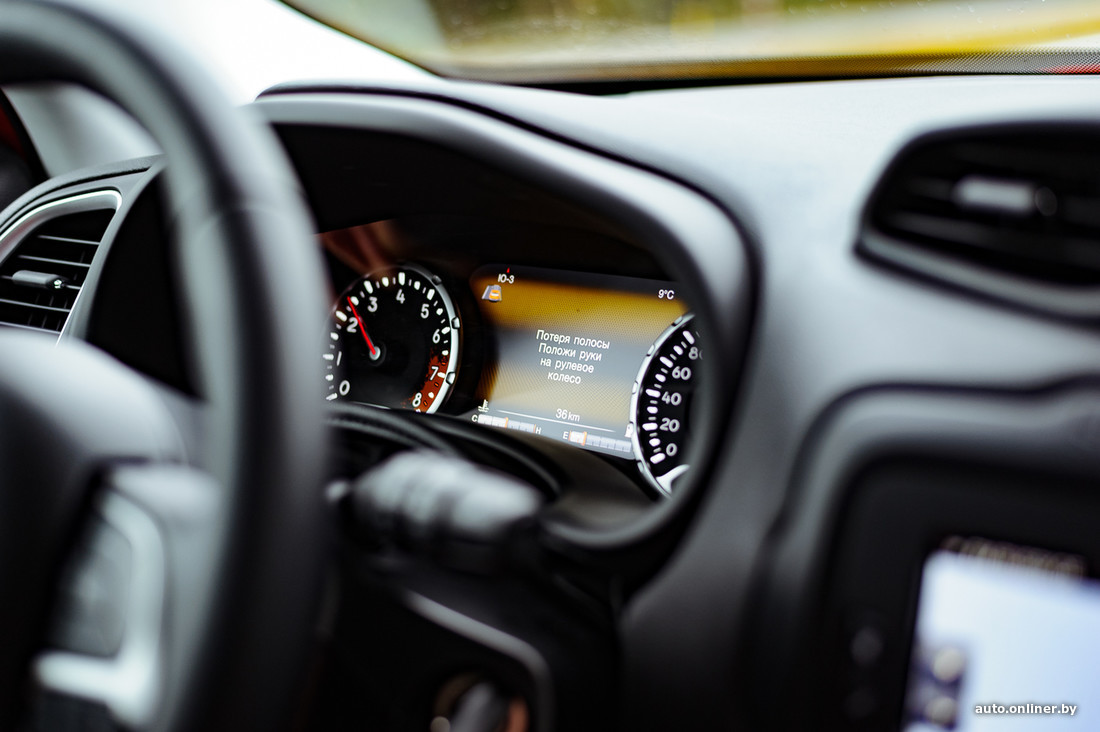На высокой скорости «Джипик» оказался очень устойчивым даже в ливень. Несмотря на «валкий» руль и заметные крены, машину с натяжкой можно назвать юркой. Маневрировать в городском потоке на Renegade так же просто, как на малыше Fiat 500. Докучает только излишне «трусливая» система мониторинга слепых зон. При обычном рядовом перестроении она ругается, хотя до идущего сзади автомобиля — несколько метров. Радар, следящий за полосой движения, подруливает не так охотно, как у Volkswagen или Mercedes, но улететь в отбойник зазевавшемуся водителю не даст. При этом полностью отпустить руки даже на пять секунд здесь не позволит электроника, сразу же издающая противный звук.