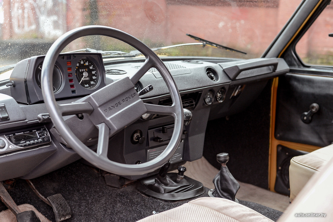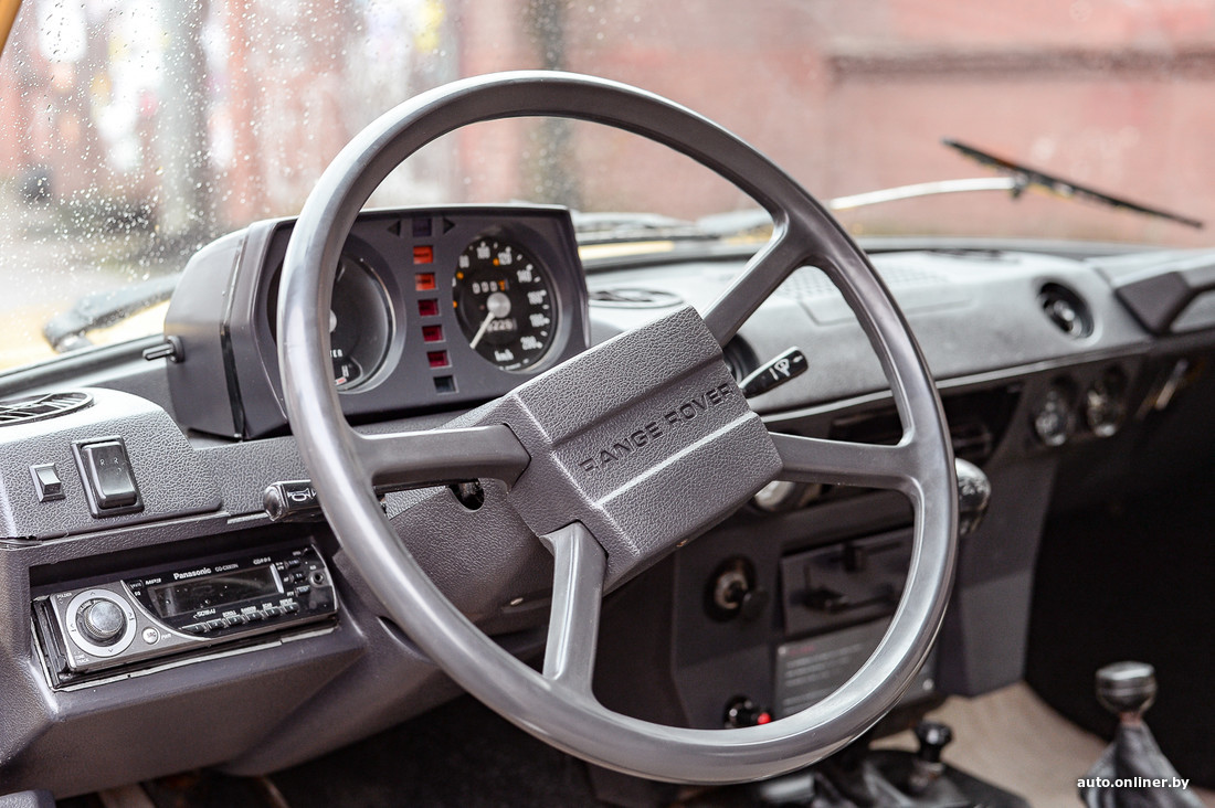 — Автомобиль попал в мои руки в очень плохом состоянии. Более-менее «живыми» были только мотор, рама и алюминиевый кузов. Очень много времени потратил на восстановление документов и подбор краски. Хотел, чтобы краска не отличалась от оригинального Bahama Gold. Проблема в том, что в те времена красили только акрилом и формула цвета существует только в акриле. Но для долговечности сегодня нужно красить под лак. Обошел 15 мастеров, прежде чем мне смогли подобрать этот оттенок. Конечно, в Беларуси нет специализирующихся на старых «британцах» СТО. Нет толковых мастеров. Да что говорить — у нас даже клуба Range Rover нет. Насколько я знаю, 2-дверных вариантов [владельцы и даже сам производитель называют машину 2-дверной, а не 3-дверной, как в технических характеристиках. — Прим. Onliner.by] в Беларуси больше нет. Видел парочку на Drive2 из России, но у нас, похоже, сохранилась только одна, — рассказал владелец старенького «Рэнджа».