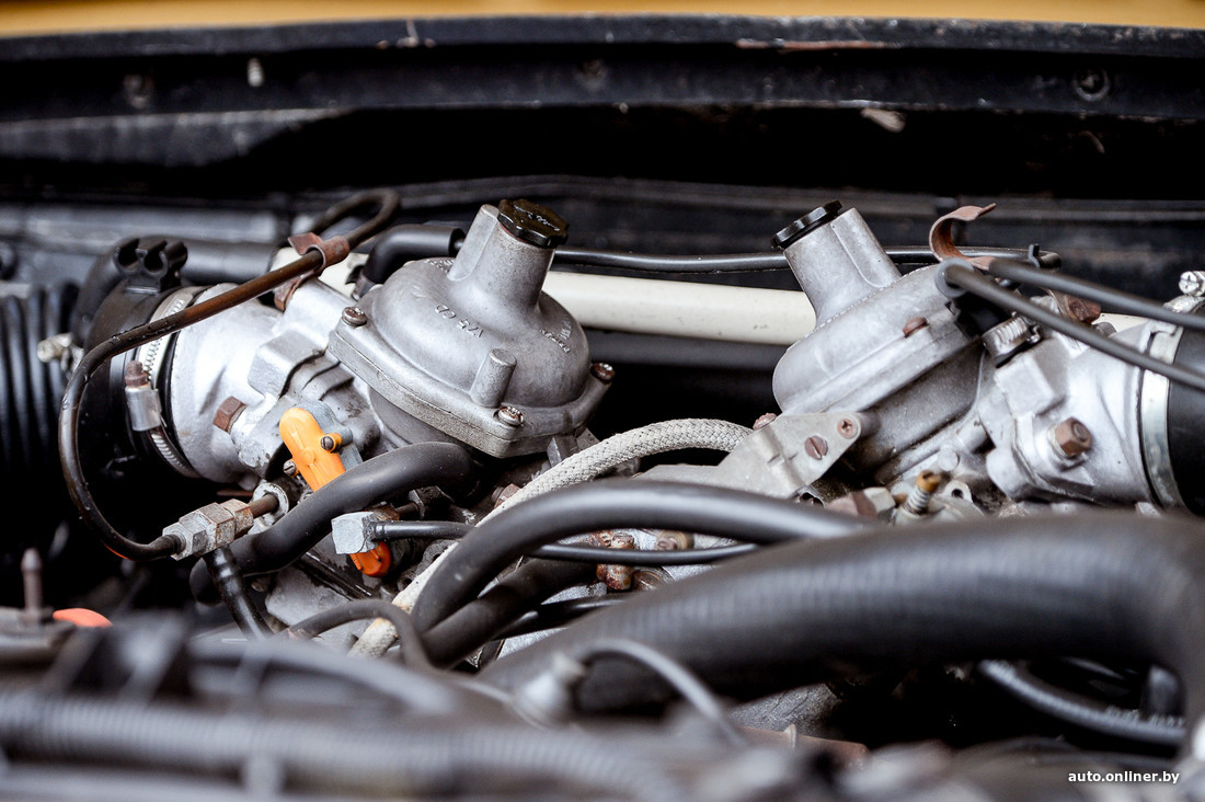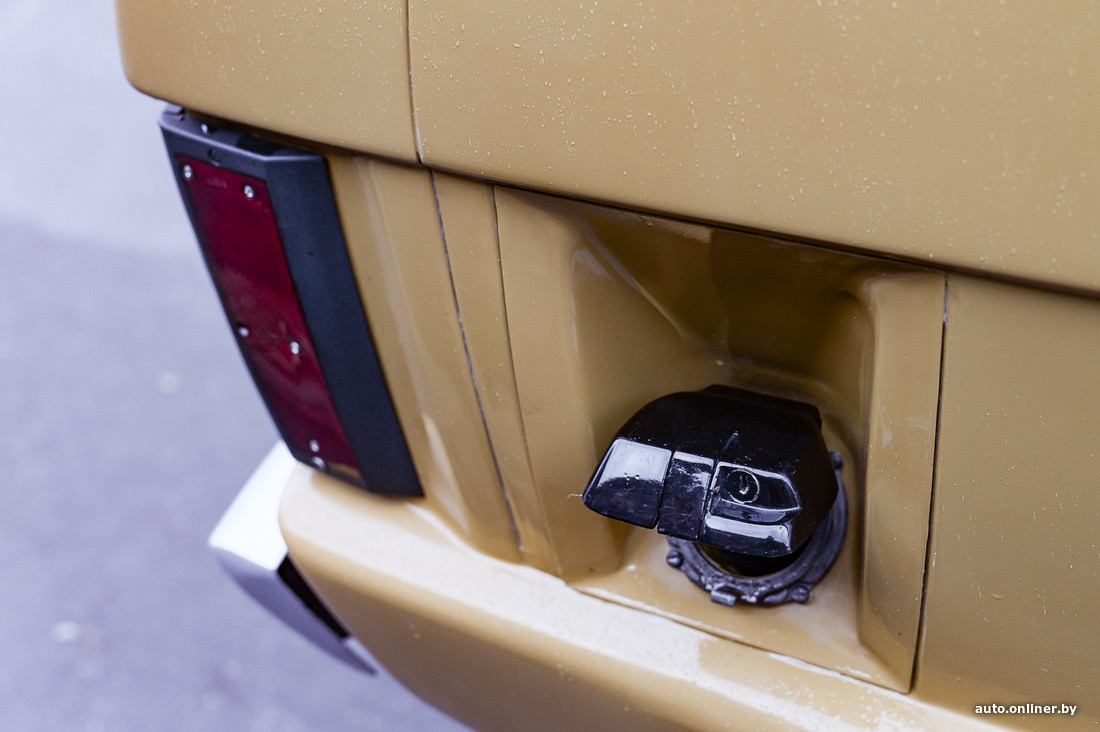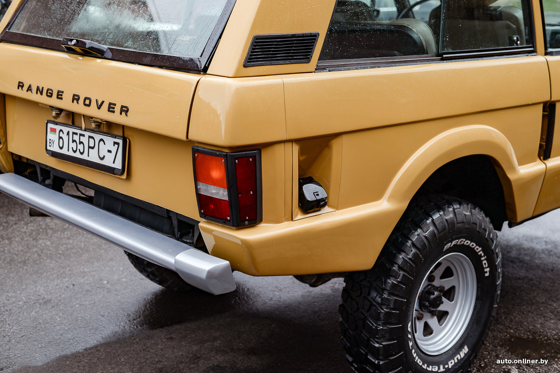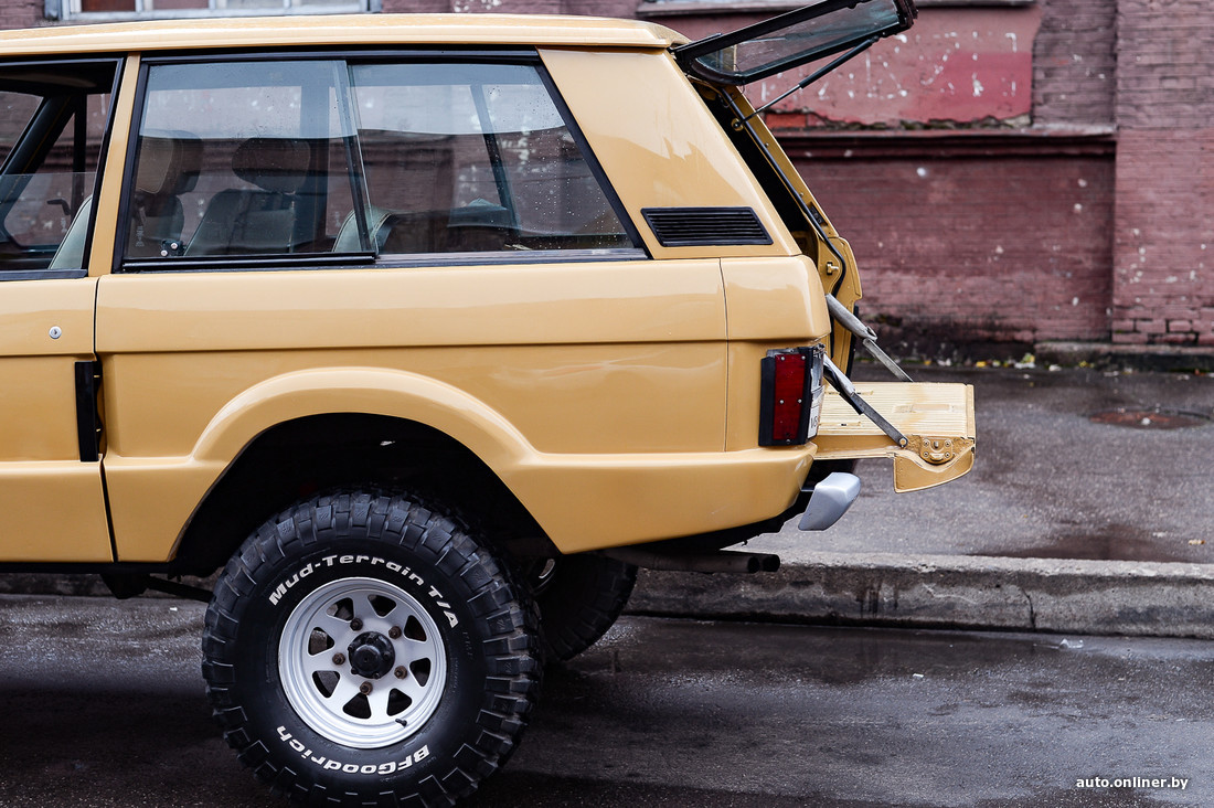 Дверь багажника самого старого Range Rover (как и у нового) состоит из двух частей. В самом багажнике просторно и есть крепление для кривого стартера. Сама «кочерга» отсутствует. Горловина бензобака прикрыта черной откидной крышкой. Карбюраторный мотор «не давится» 92-м бензином, хотя по паспорту ему положено топливо с более низким октановым числом.