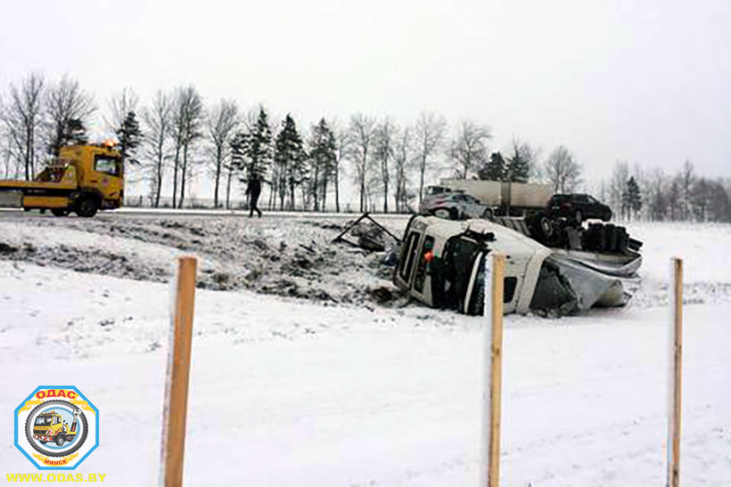 Обычно даже у скептиков не возникает сомнений относительно квалификации дальнобойщиков, водителей-профессионалов со стажем. Но дорога есть дорога, и в особенности зимой возможно всякое. В Объединенной дорожно-аварийной службе сообщили о ДТП на трассе М1 (Брест — Минск — граница России). Там в кювет опрокинулась фура.