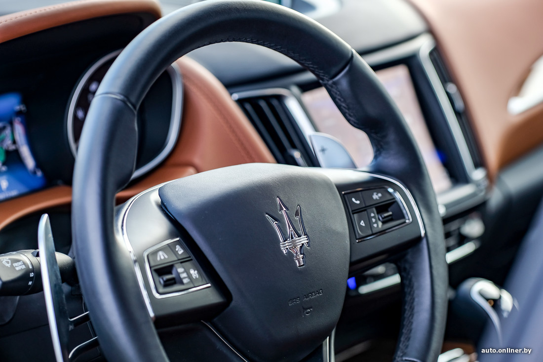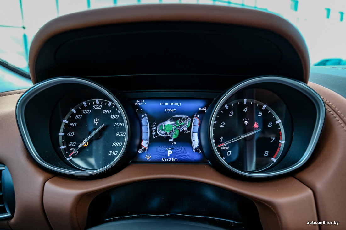 На кроссовер пока еще ставится старый добрый гидроусилитель руля, который в следующем году обещают заменить на электро. Только не думайте, что этот переход связан с плохой настройкой рулевого управления — электроусилитель необходим для внедрения системы удержания полосы движения. Если бы не этот ассистент, можно было бы до конца «жизни» оставить Maserati с «гидрачом» — в крутых виражах руль у автомобиля очень легкий и «прозрачный». Лично мне он понравился больше, чем меняющий усилие «электроруль» BMW X6. Низкий центр тяжести и идеально настроенное «гибливское» шасси обеспечивают точность реакций и непревзойденную устойчивость на высокой скорости.