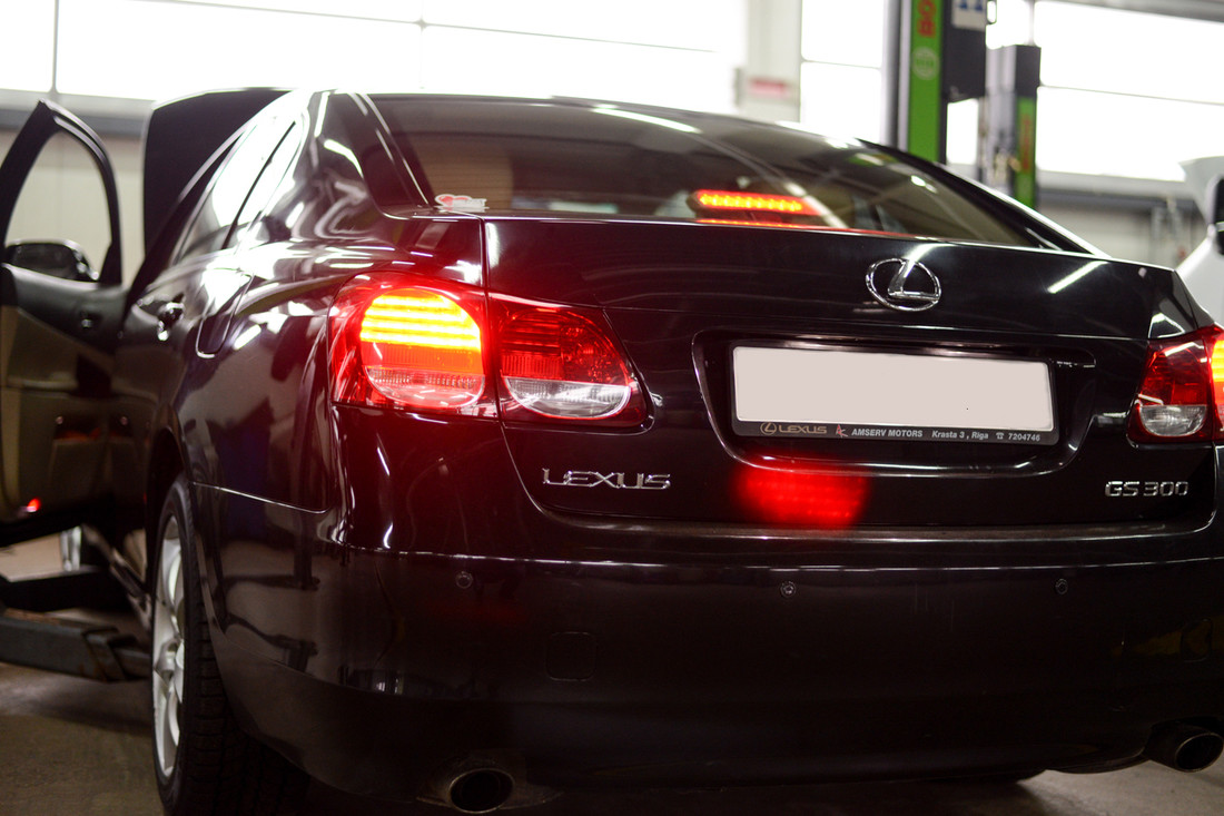 В других функциях GS не отстает от премиума: изображение с камеры заднего вида дополнено линиями траектории, аудиосистема представлена 14 колонками и сабвуфером (в магнитолу зачем-то добавлен такой анахронизм, как дека для аудиокассет), имеются электропакет стекол, электрорегулировка сидений с поддержкой нескольких положений, электрорегулировка рулевой колонки и зеркал с памятью, два положения подвески (Normal и Sport). Двухзонный климат-контроль, кожаный салон, легкосплавные диски, ксенон, парктроник, подогрев сидений, система контроля стабилизации, громкая связь — это все тоже есть.