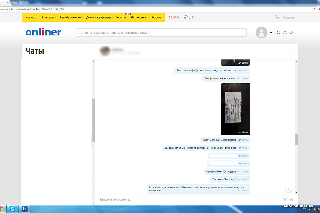 В качестве доказательств Виктор предоставил нам скриншоты переписки с неким пользователем Onliner.by. Последний ссылался на занятость, но обещал помочь, если «баварец» докажет, что это он. Его устроили несколько фотографий (в той же одежде, в которой «баварец» был в суде), высланных Виктором.