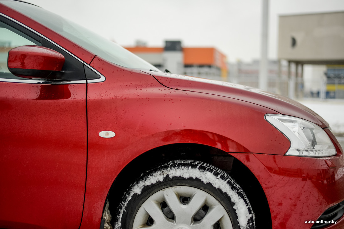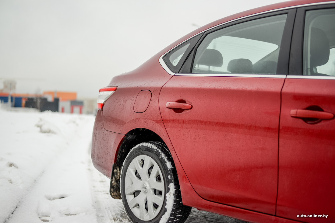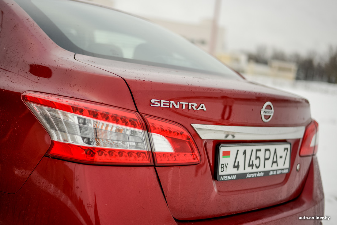 Сегодняшний лот — Nissan Sentra с пробегом в 52 тыс. км (примерно половина из них — по трассе) за $12,9 тыс. в эквиваленте. Это седан красного цвета с бензиновым мотором объемом 1,6 литра, механической коробкой передач и передним приводом. «По техпаспорту — 2014 год, начало эксплуатации — март 2015 года, — говорится в объявлении. — В данный момент находится на гарантии у белорусского дилера. Все сервисное обслуживание — по регламенту. В комплектацию входят: кондиционер, мультимедиа с подключением к смартфону и громкой связью, электроподъемники всех стекол, зеркала с подогревом, подогрев передних сидений (два режима), корректор фар и их омыватель, действительно слаженно работающие ABS, ESP. Машина большая и удобная, при этом простая. Огромный багажник (плюс полноразмерная запаска, домкрат, ключ). Низкий расход — на трассе борткомпьютер выдал 4,9 литра. В авариях не бывала, все стекла, фары, ремни — родные».